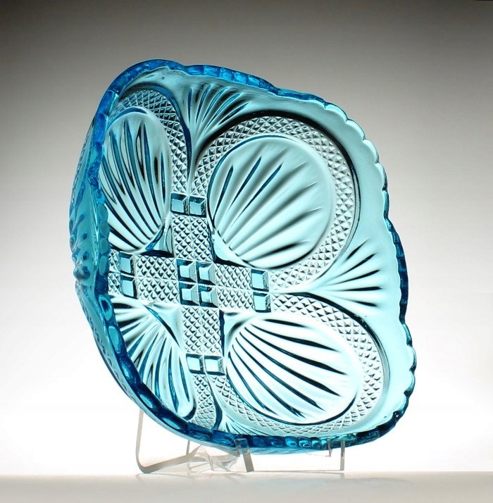 Чаша з синього пресованого скла. Виконана в стилі модерн. Має квадратну, ажурну основу. Воно походить із домашнього скляного заводу «Ząbkowice» у Домброві-Гурнічі. У каталозі з 1920 р має номер 1226/VI. Серія Verre Brilliant.