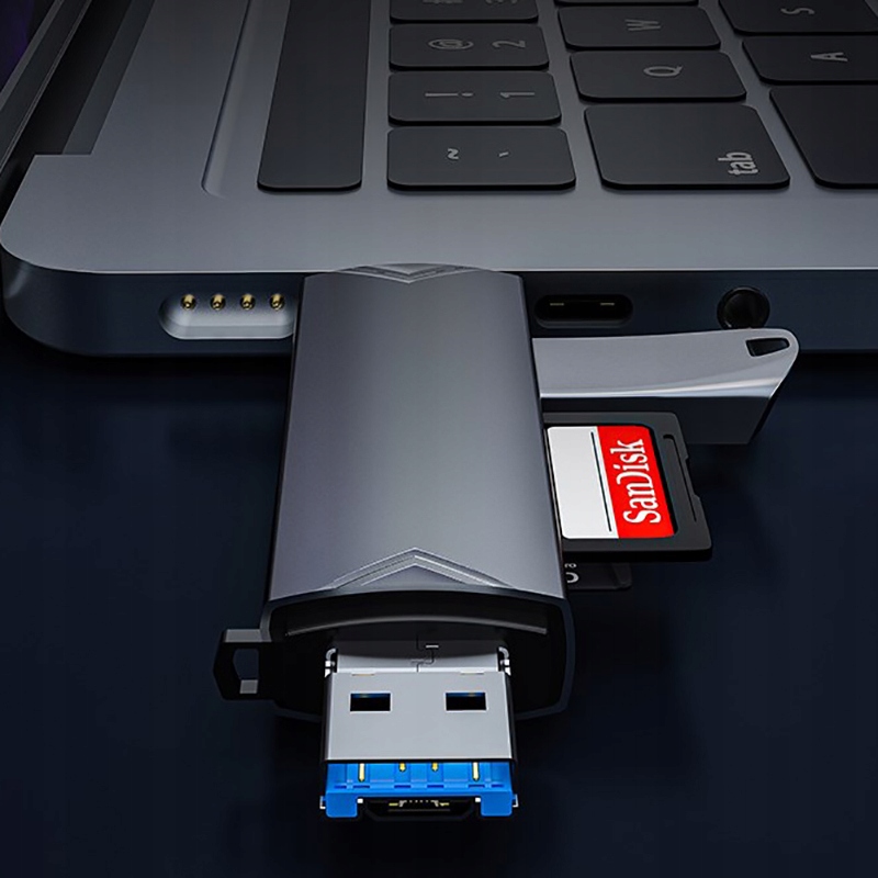☑sb3.0 зчитувач карт із портом USB, портом Micro-USB та портом Type C, завдяки якому зчитувач картки сумісний із планшетами та смартфонами, які підтримують функцію OTG