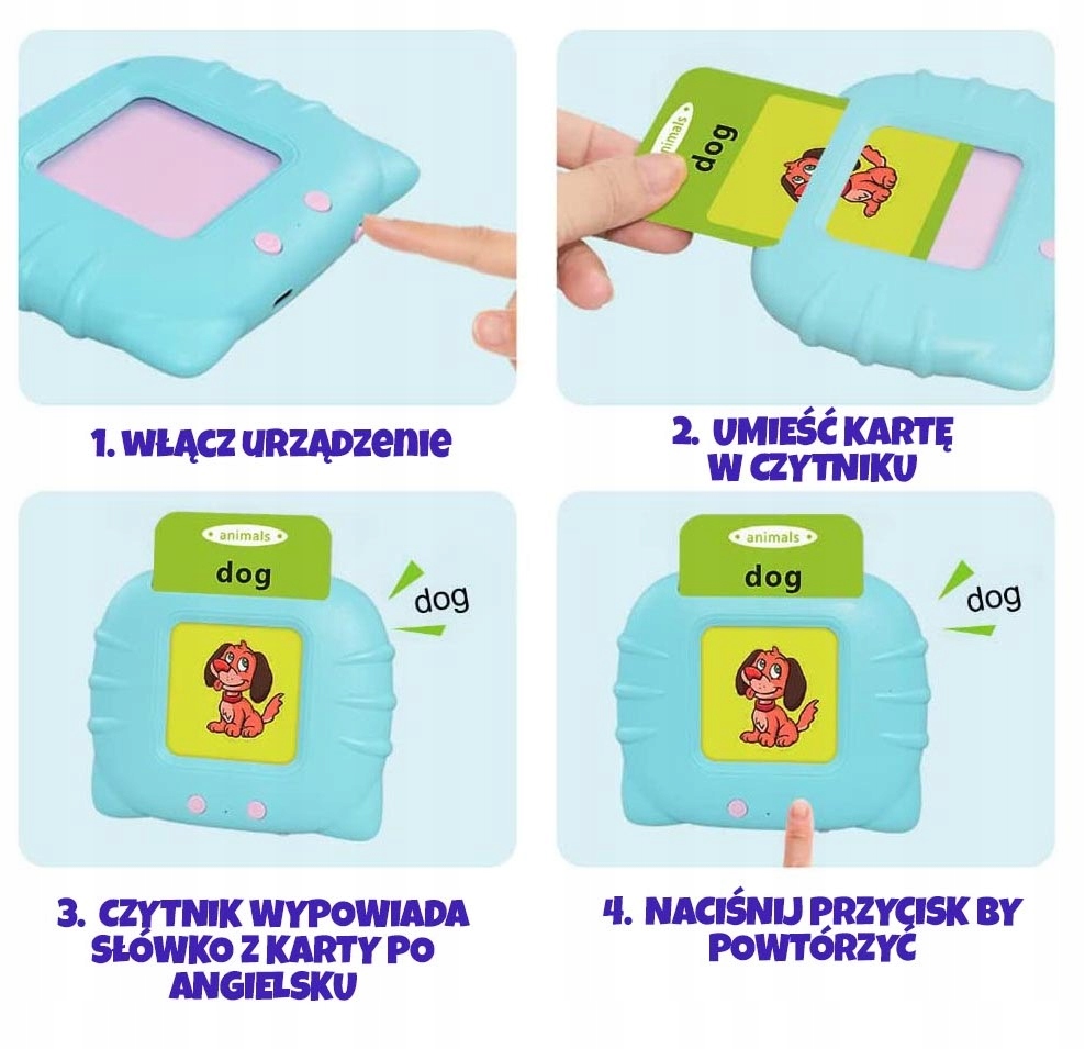 іграшка Едунгельського, яка навчає вашій дитині основних слів в мові англійська . Просто покладіть карту в читача, і дитина почує слово з правильною вимовою.