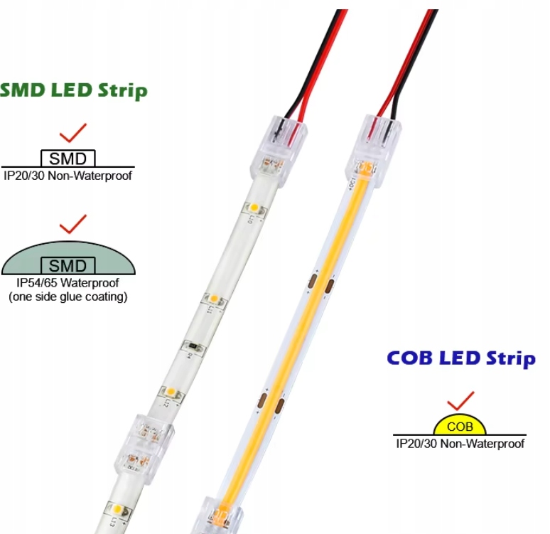 ZŁĄCZKA ŁĄCZNIK JEDNOSTRONNY Z PRZEWODEM DO TAŚM LED COB 8mm IP20