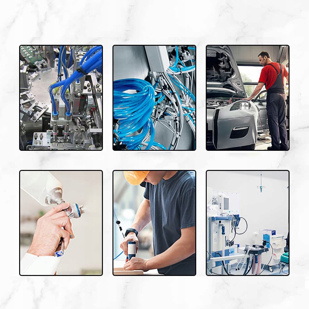 - 【Висока якість】 Ці повітряні фітинги виготовлені з високоякісного пластику та широко використовуються в автоматичній промисловості, обладнанні для майстерень, ремонті автомобілів, оздобленні фарби, деревообробка, стоматологічне обладнання тощо.