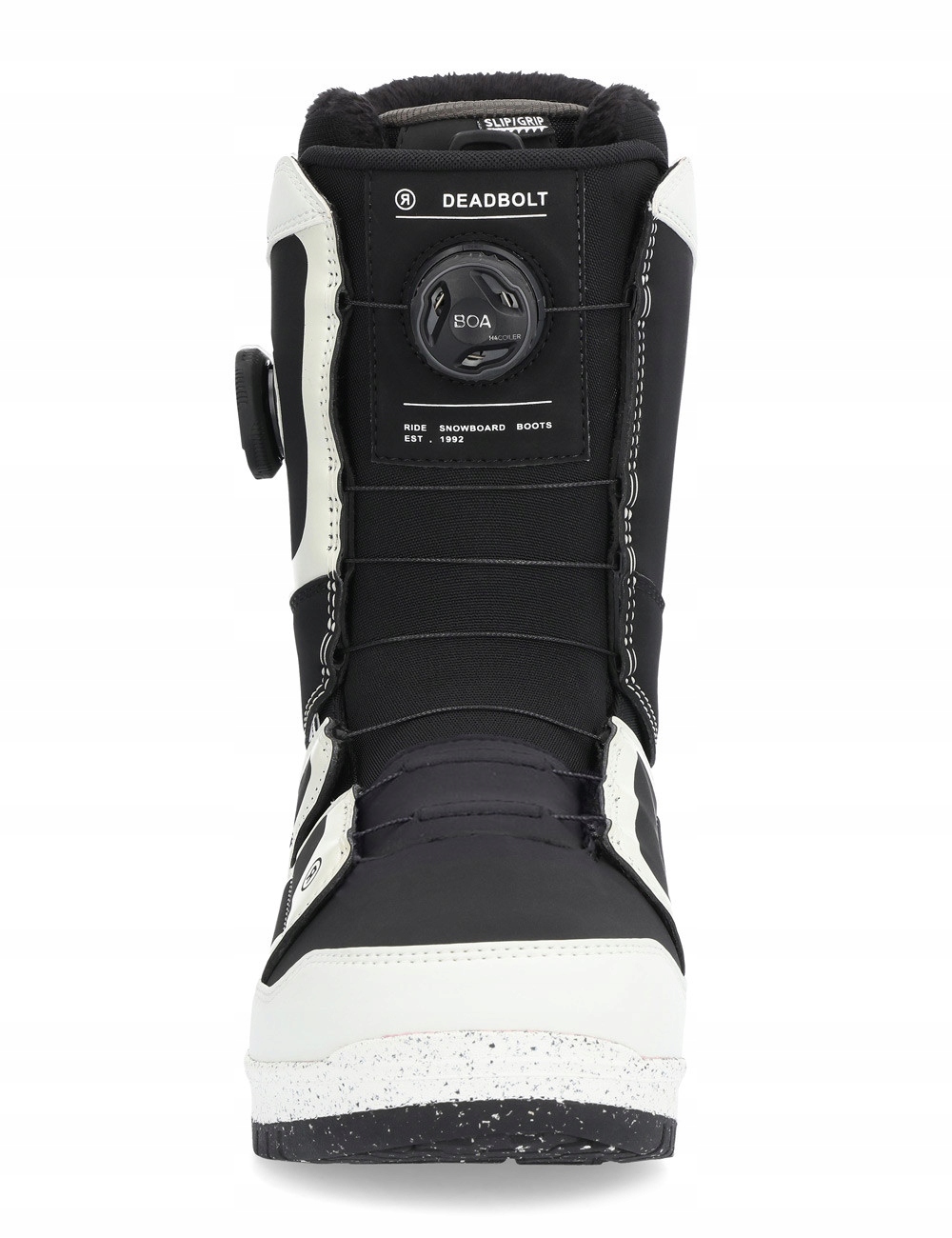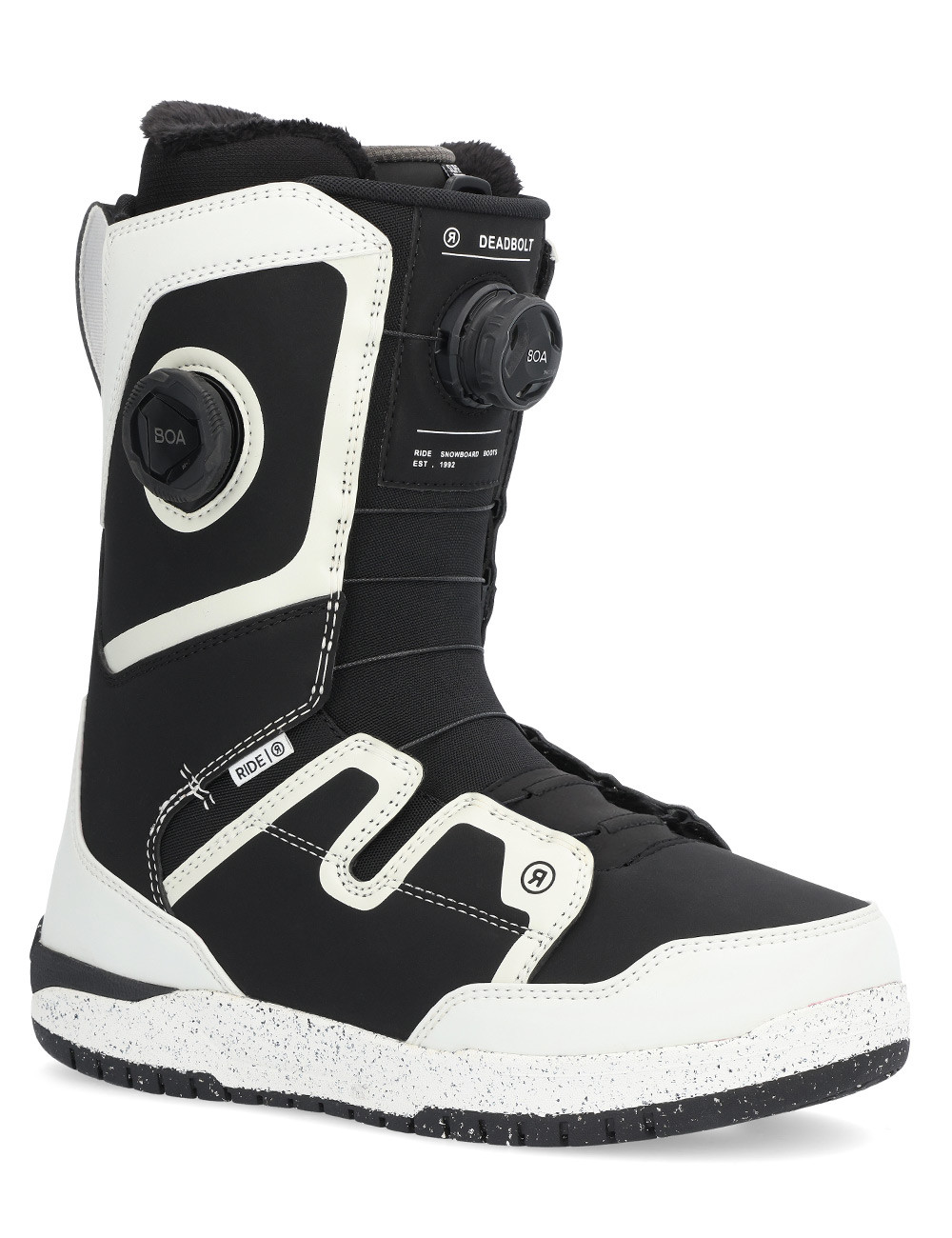Модель RIDE Deadbolt є взуттям для вдосконалених вершників, які потребують чудової підтримки та контролю. Взуття на сноуборді досить жорсткі, щоб довести себе під час швидкого та динамічного водіння, а також належним чином комфортно проводити години в снігопарку. 4 Використання in2grated структури зменшує порожні проміжки між внутрішньою лінією та оболонкою і дозволяє ідеально підходити та відчуття дошки. 3D, що утворюється технологіям язика , робить теля ідеально на основі мови взуття, завдяки якій воно ідеально поглинає вібрації навіть на великих швидкостях.