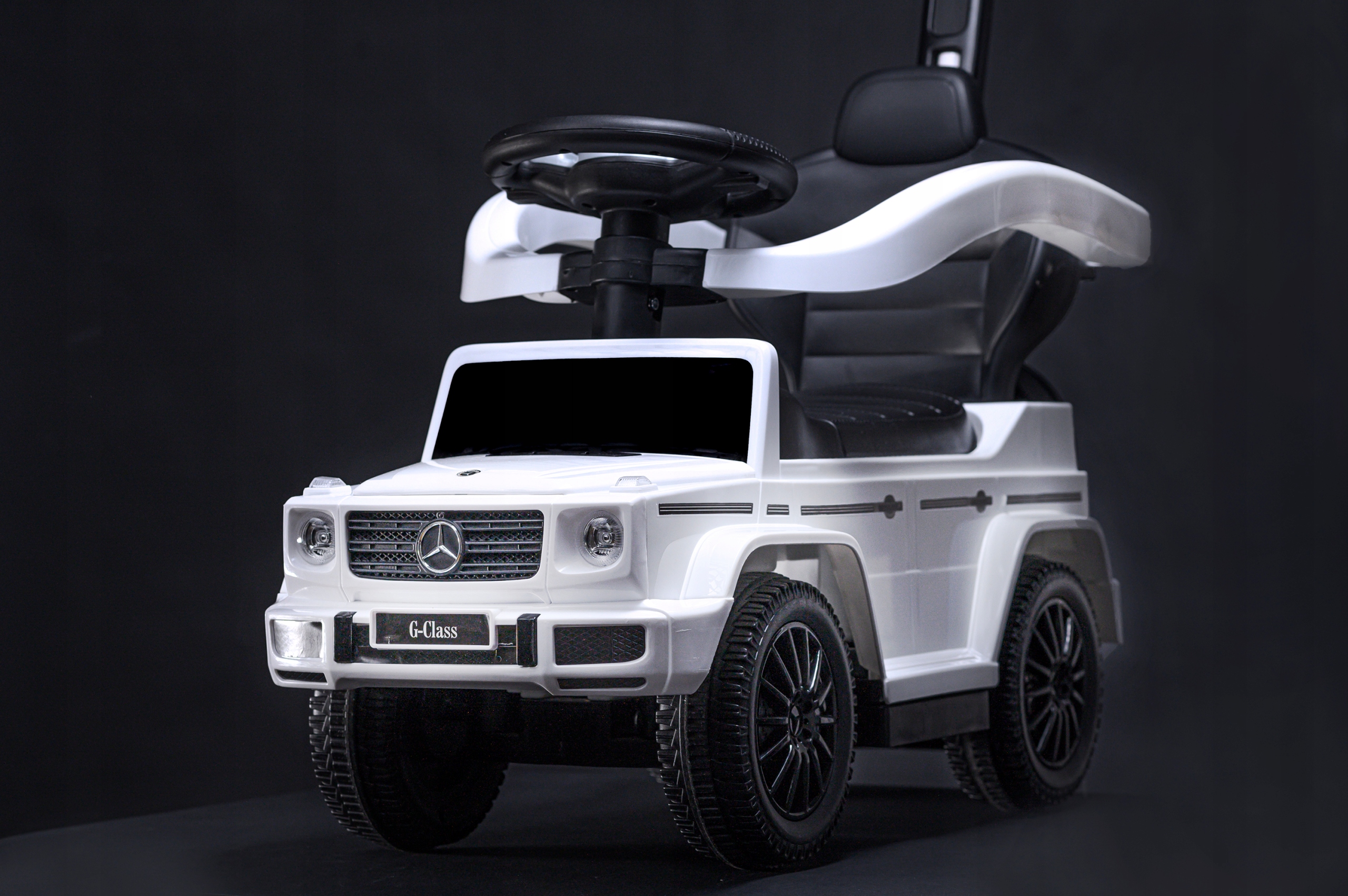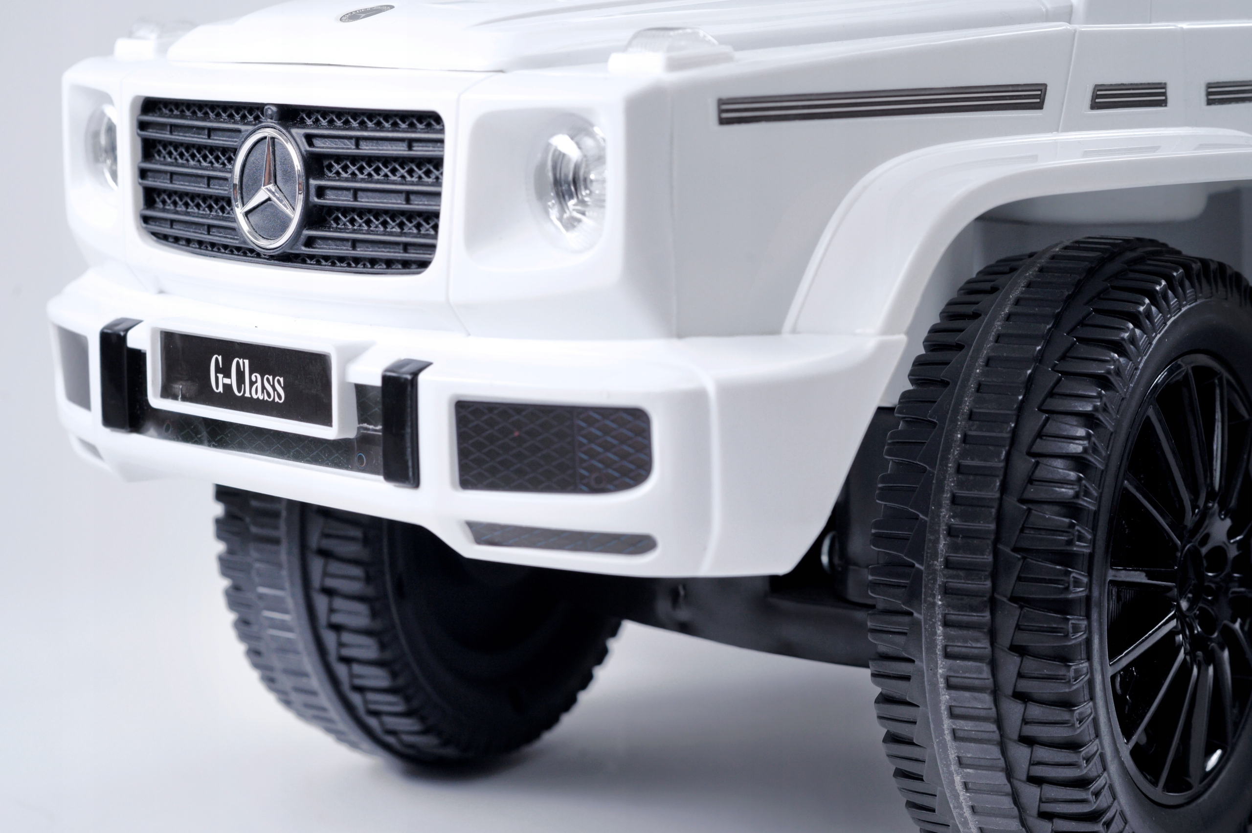 Mercedes Ride Class G (G-Class) під ліцензією Mercedes виготовляється з високою обережністю за найменшими деталями та якістю використовуваних матеріалів. має кручення колеса з кермом або ручкою, , які забезпечать комфорт водіння під час прогулянок. Дуже простий у встановленні та демонтажі, і стабільні та безпечні для дитини. Здатність відсторонити індивідуальні елементи ( бар'єри та обробка ), що робить їзду 3in1 "рости" з дитиною.