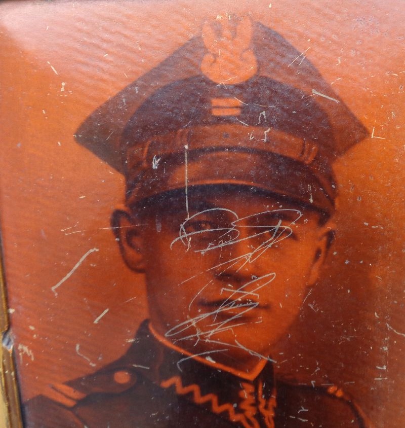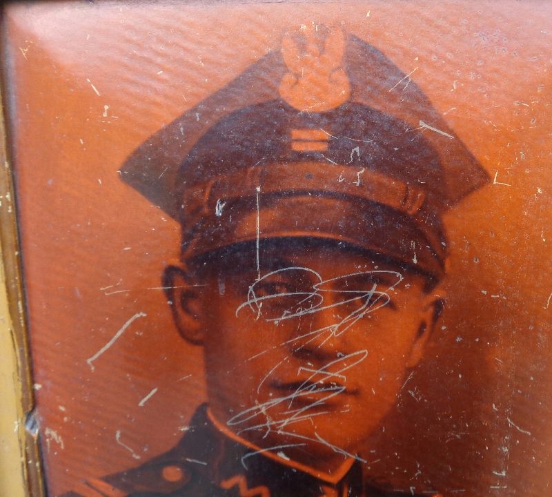 ZDJĘCIE ŻOŁNIERZA W DREWNIANEJ RAMIE LATA 20-TE
