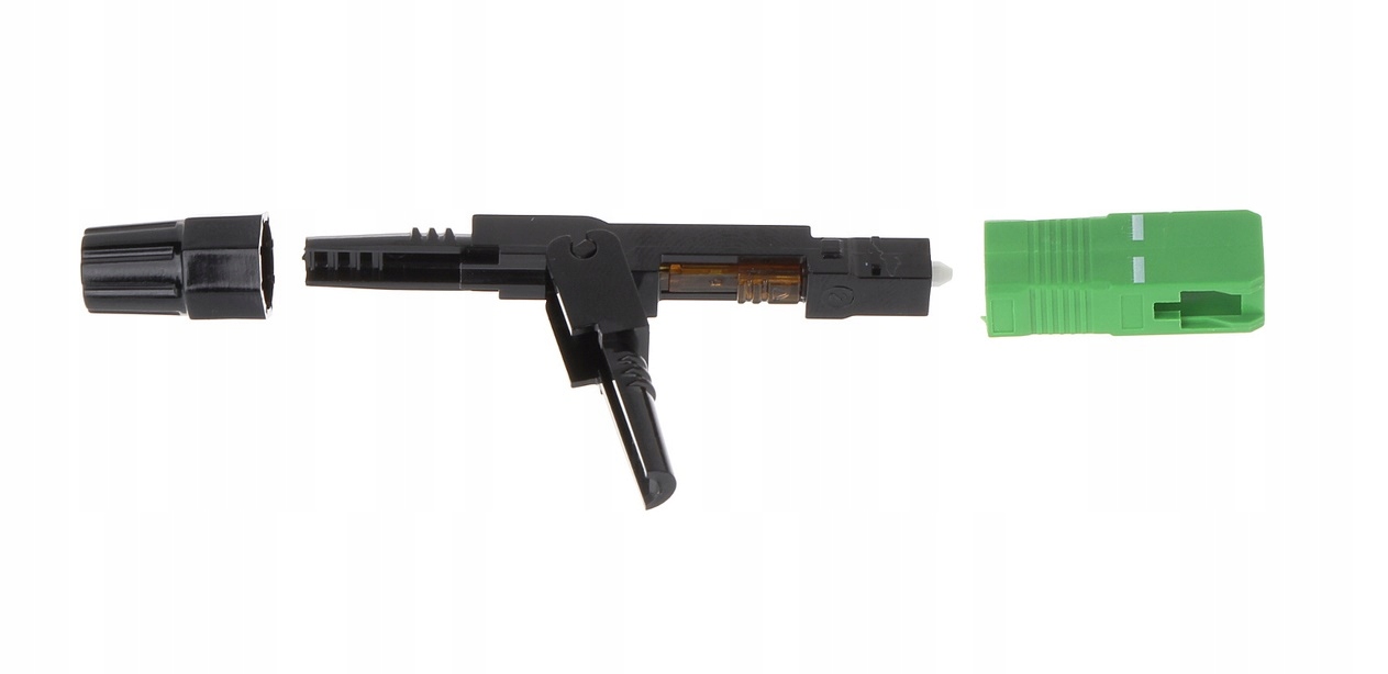 Механічний роз'єм дозволяє завершити один -модний волоконно -оптичний кабель з з'єднувальним з'єднувачем SC/APC без роз'ємів для споживання та полірування. Стерильні умови не повинні заробляти швидкі муфти, оскільки волокна плитка була відшліфована та вставлена в лабораторні умови (вставлене волокно в стандартному стандарті G.657A).