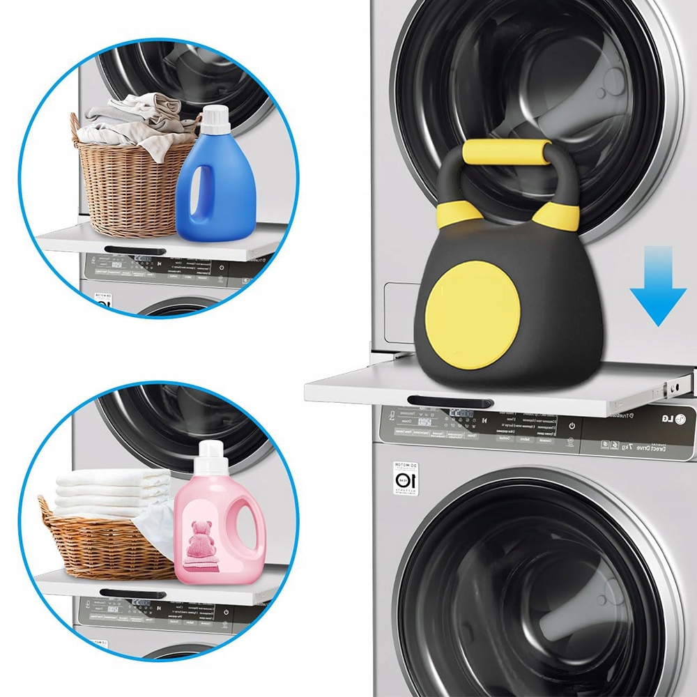 З’ЄДНАННЯ ДЛЯ ПРАЛЬНО-СУШИЛЬНОЇ МАШИНИ ВИСУВНА ПОЛИЦЯ 54*60*7,5 СМ ДО 150 КГ БІЛИЙ