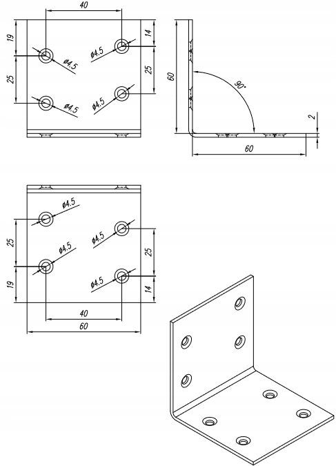 З'ЄДНАННЯ КУТОВЕ 60х60х60 КС3 10 ШТ