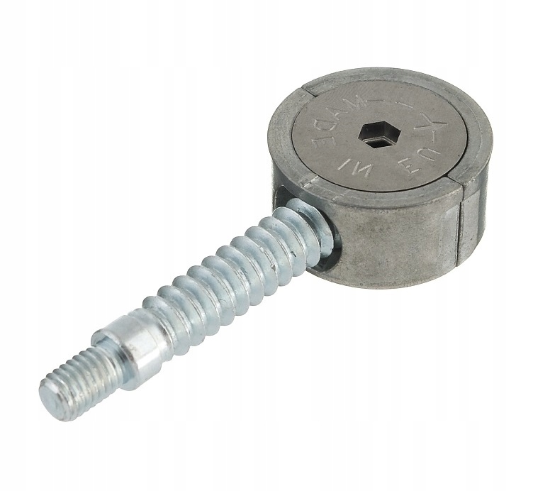 З'єднувач BMZ ø 35 мм з гачком з метричною різьбою М8, призначений для кріплення ліжок, шаф, комодів і столів. В основі системи - гачок з метричною різьбою - вкручується в узголів'я ліжка або дерев'яну ніжку, в розетку з метричною різьбою М8. Збоку в планці ліжка просвердлюється отвір ø 35 мм (45 мм від краю до центру отвору ø 35 мм), потім шестигранним ключем SW-6 мм вкручується ексцентрик з фіксатором. .