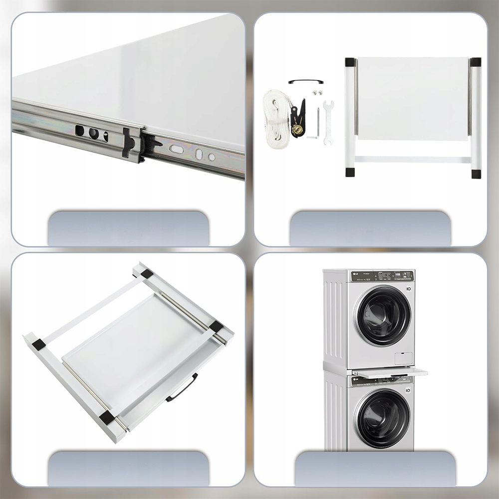 Призначений для вертикального розміщення пральних/сушильних машин із фронтальним завантаженням, універсальний розмір 54×60 см, заощаджує 50% горизонтального простору.