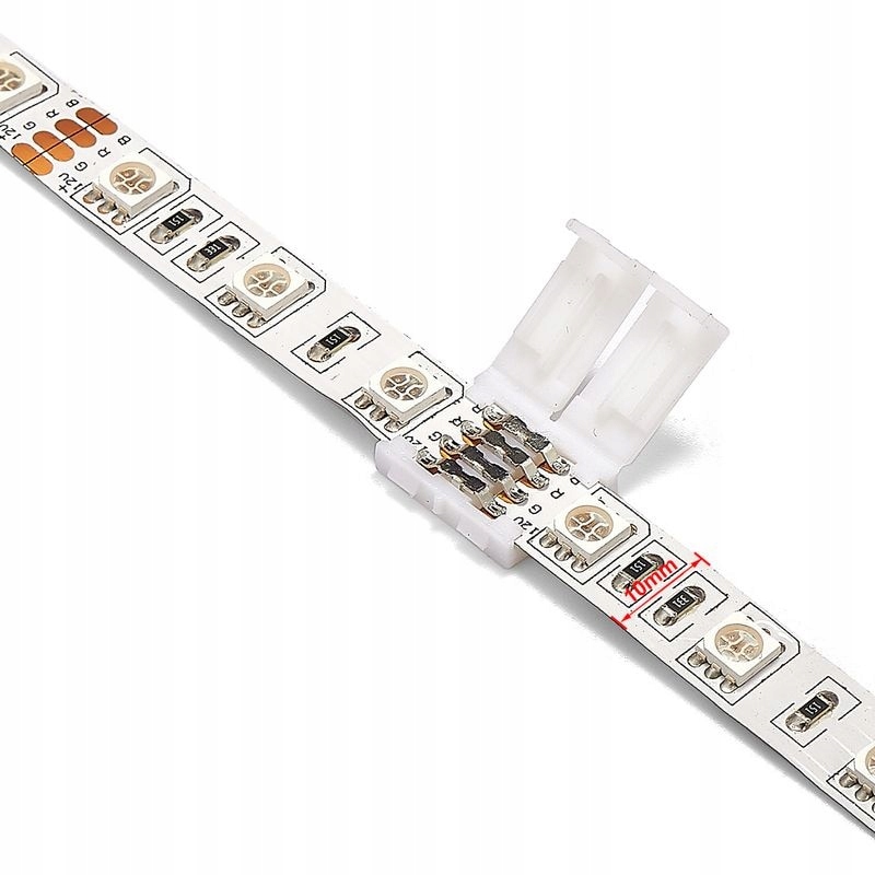 З’єднувач дає змогу швидко під’єднати світлодіодну стрічку RGB шириною 10 мм (SMD5050 – 4 контакти) без необхідності паяти чи використання будь-яких інструментів. Просто розмістіть стрічку належним чином і закрийте засув, щоб отримати міцне з’єднання.