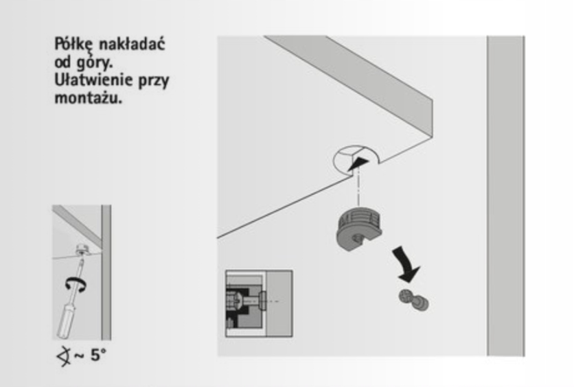 - невеликі з’єднувачі для стабільного та довговічного з’єднання полиць із бічними стінками, що працюють за перевіреним ексцентричним принципом, що гарантує надійне з’єднання завдяки рифленим з’єднувальним поверхням