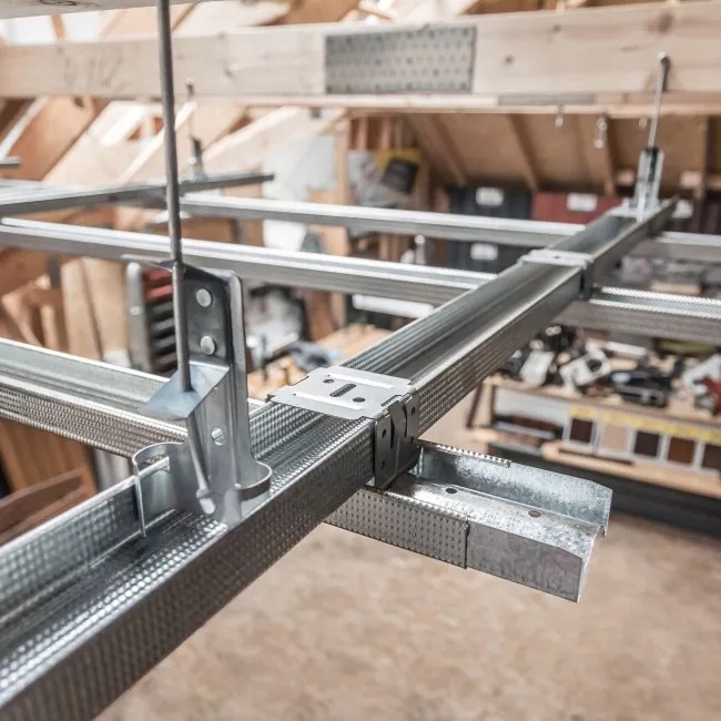 Поздовжній з’єднувач для профілів CD 60 для з’єднання Профілі CD поздовжньо на одному рівні. Він обмежує з’єднувач від занадто глибокого введення в профіль CD і захищає від зсуву вже встановленого з’єднувача між двома профілями CD під час вібрації стелі та роз’єднання з’єднання.