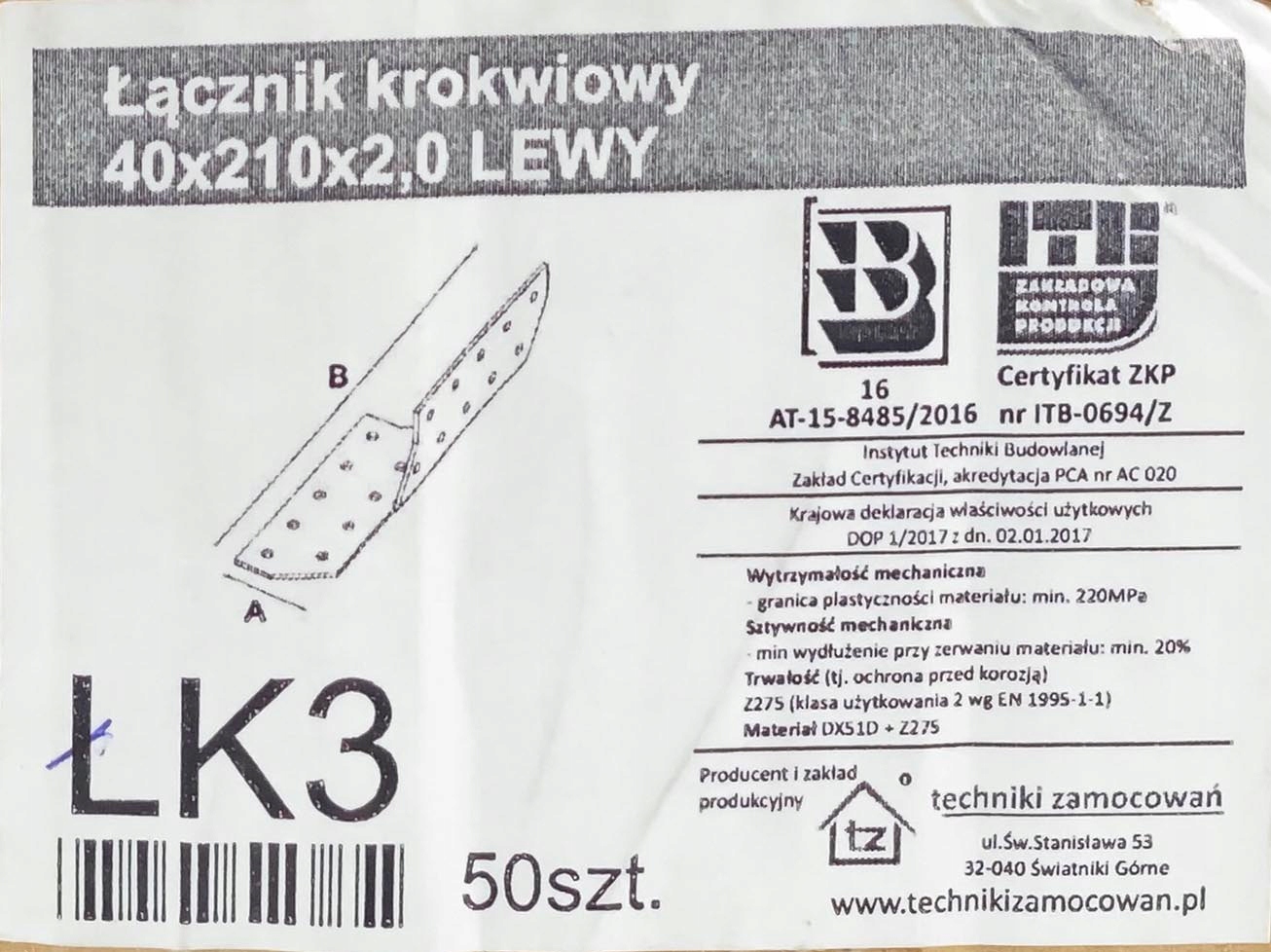 З'єднувачі для крокв столярні ліві ŁK3 40x210x 2,0 мм (50 шт.)