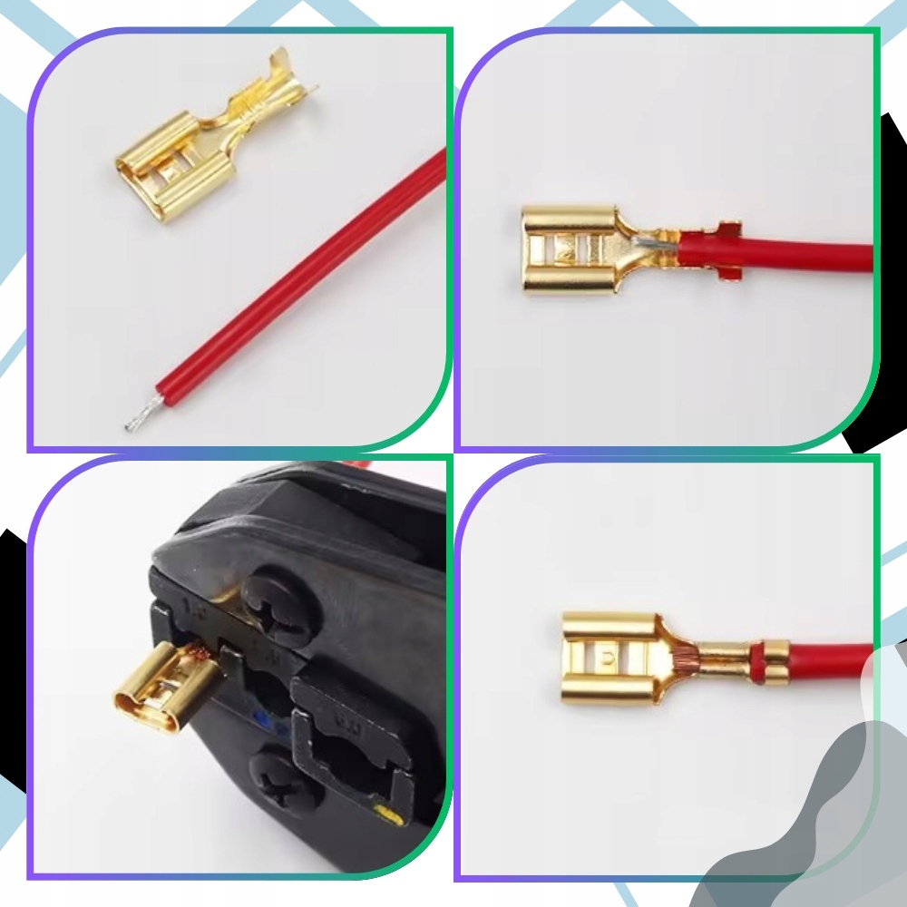 - 50 × гніздо роз’єму 2,8 мм, 50 × гніздо роз’єму 4,8 мм, 50 × гніздо роз’єму 6,4 мм.