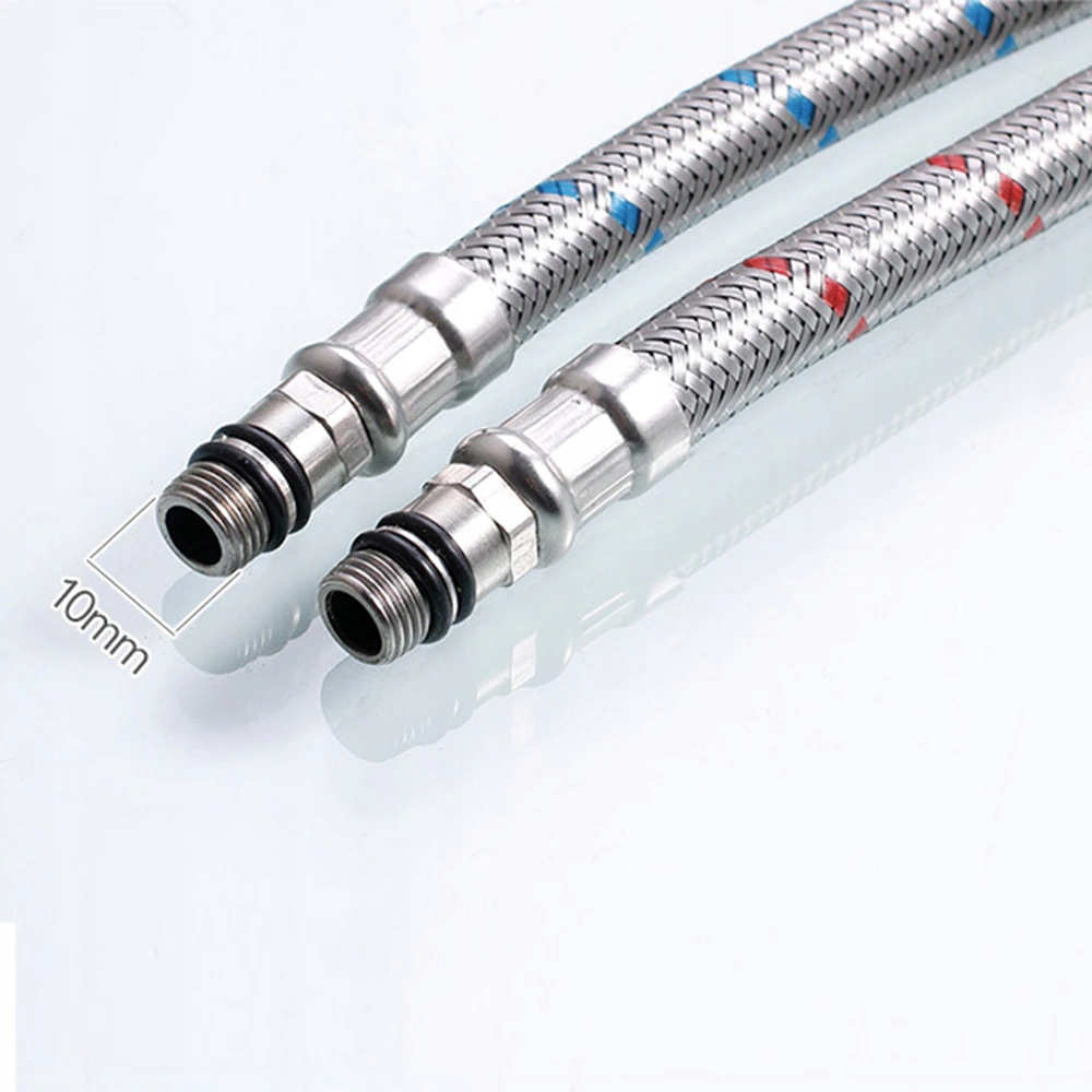 Шланги виготовлені з нержавіючої сталі, стійкої до подряпин і тьмяності. Подвійні кільцева ущільнювальна шайба, не протікає та забезпечує якість та довговічність Ідеально підходить для ванної кімнати, туалету, умивальника, бойлера, змішувача для умивальника/біде з гарячою та холодною водою.