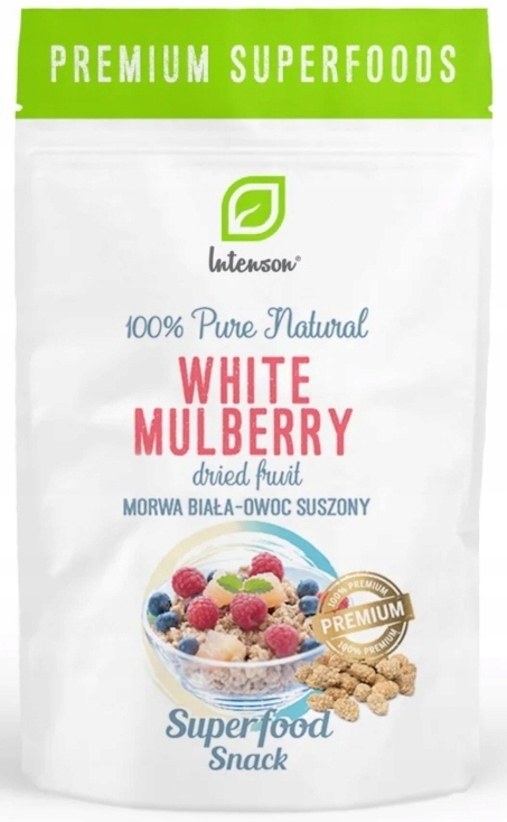 Внесіть у свій раціон трохи природи з Intenson White Mulberry! Наші сухофрукти - це не тільки легка закуска, але й джерело смаку, здоров'я та енергії. Біла шовковиця, символ свіжості та натуральності, зберігає всі свої корисні властивості в нашому продукті. Ми пропонуємо вам інтенсивний смак і поживну цінність у кожному шматочку. Подаруйте собі гармонію смаків, яка принесе користь вашому здоров’ю!