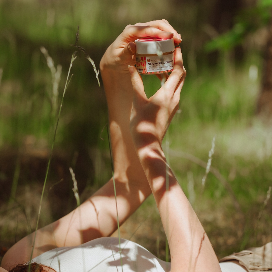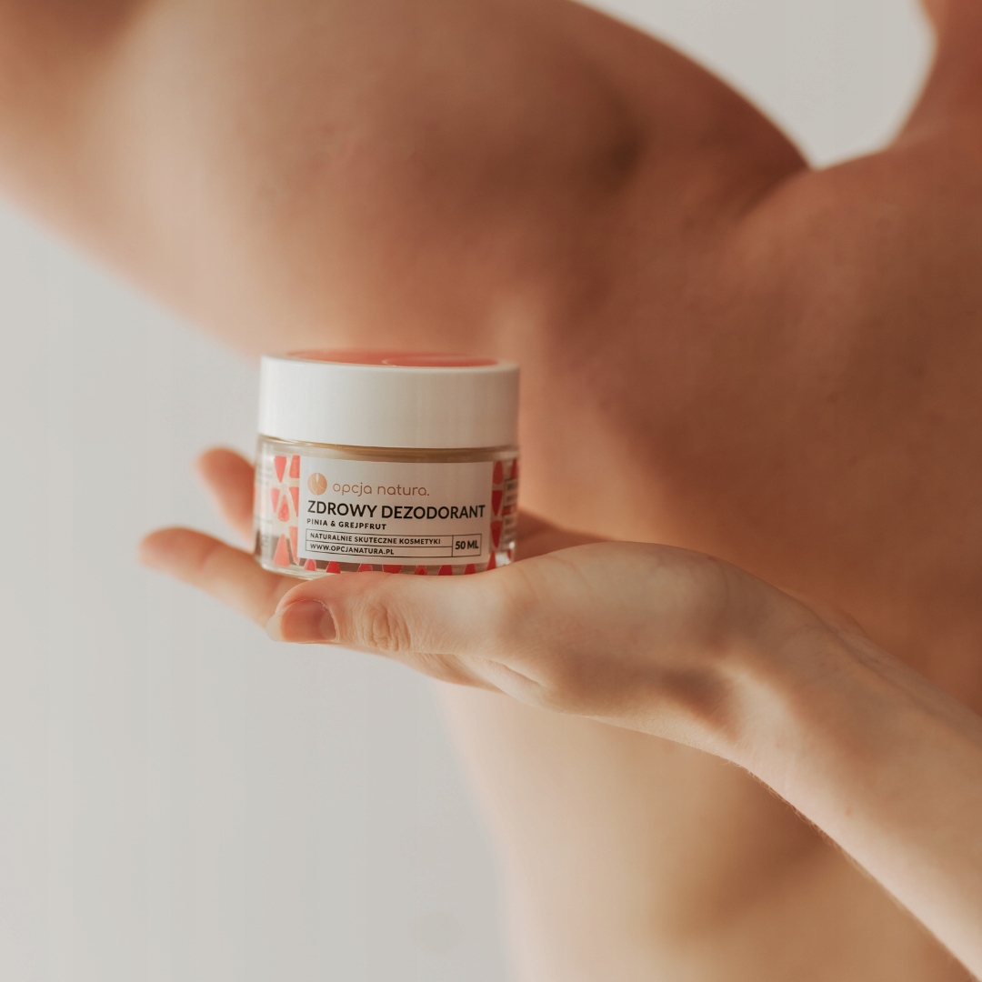 Здоровий дезодорант Pinia & Grapefruit - це натуральний, кремовий косметичний з оксамитовою консистенцією та свіжим ароматом лісової прогулянки з цитрусовою нотою. Основна його діюча інгредієнт - харчова сода, яка ефективно нейтралізує неприємні запахи, не блокуючи природне процес поті. Композиція ароматів, заснована на природних ефірних оліях з сосни та грейпфрута, має не лише освіжаючий ефект, але й має антибактеріальні та протигрибкові властивості. Крім того, лляне масло, що міститься у формулі, підтримує регенерацію шкіри та відновлює її еластичність. Продукт біологічно розкладається, закритий у скляній банці і не містить синтетичних добавок. Розроблений як для жінок, так і для чоловіків, це забезпечує відчуття свіжості цілий день. Завдяки вмісту соди, це не рекомендується людям з дуже чутливою шкірою - у випадку роздратування рекомендується припинити використання.