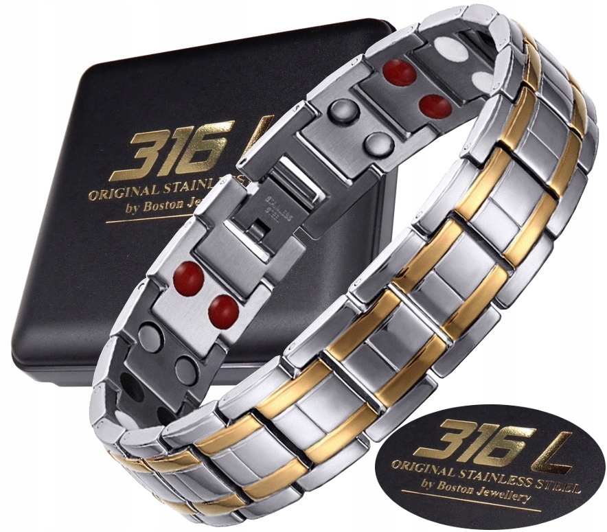У цій пропозиції ми представляємо виключно елегантну чоловічу модель магнітного браслета, який виготовлений з ХІРУРГІЧНА СТАЛЬ 316L НАЙВИЩОЇ ЯКОСТІ, покрита 18-каратним золотом. Ця модель відрізняється дуже елегантним поєднанням золотих і срібних елементів. Така композиція дуже ефектно виглядає на руці і справляє неймовірне враження!!! Це одна з найцікавіших і найбільш продаваних моделей за останній час!