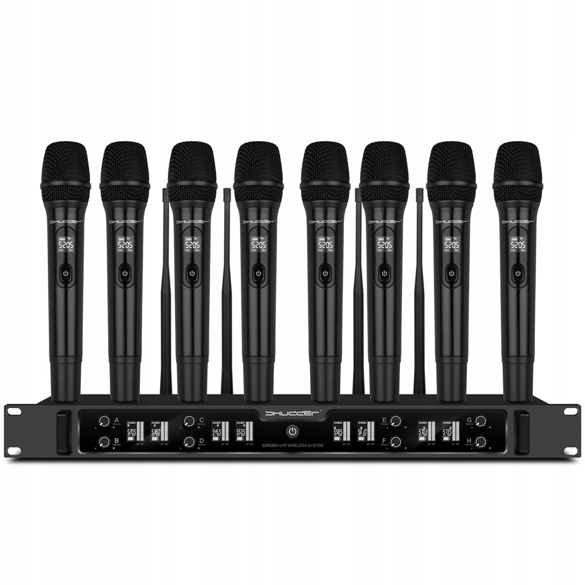 8-канальний мікрофон Shudder, встановлений з серії 20,-це система бездротового мікрофона UHF, що працює на змінних частотах. Ця серія була розроблена для забезпечення високоякісної звуку та надійної передачі. Ідеально підходить для професіоналів, ді -джеїв, ведучих, караоке, публічних виступів та всіх подій, де потрібні свобода руху та відмінна якість звуку. Кожен передавач має РК -дисплей, який показує частоту та стан акумулятора підключених мікрофонів.