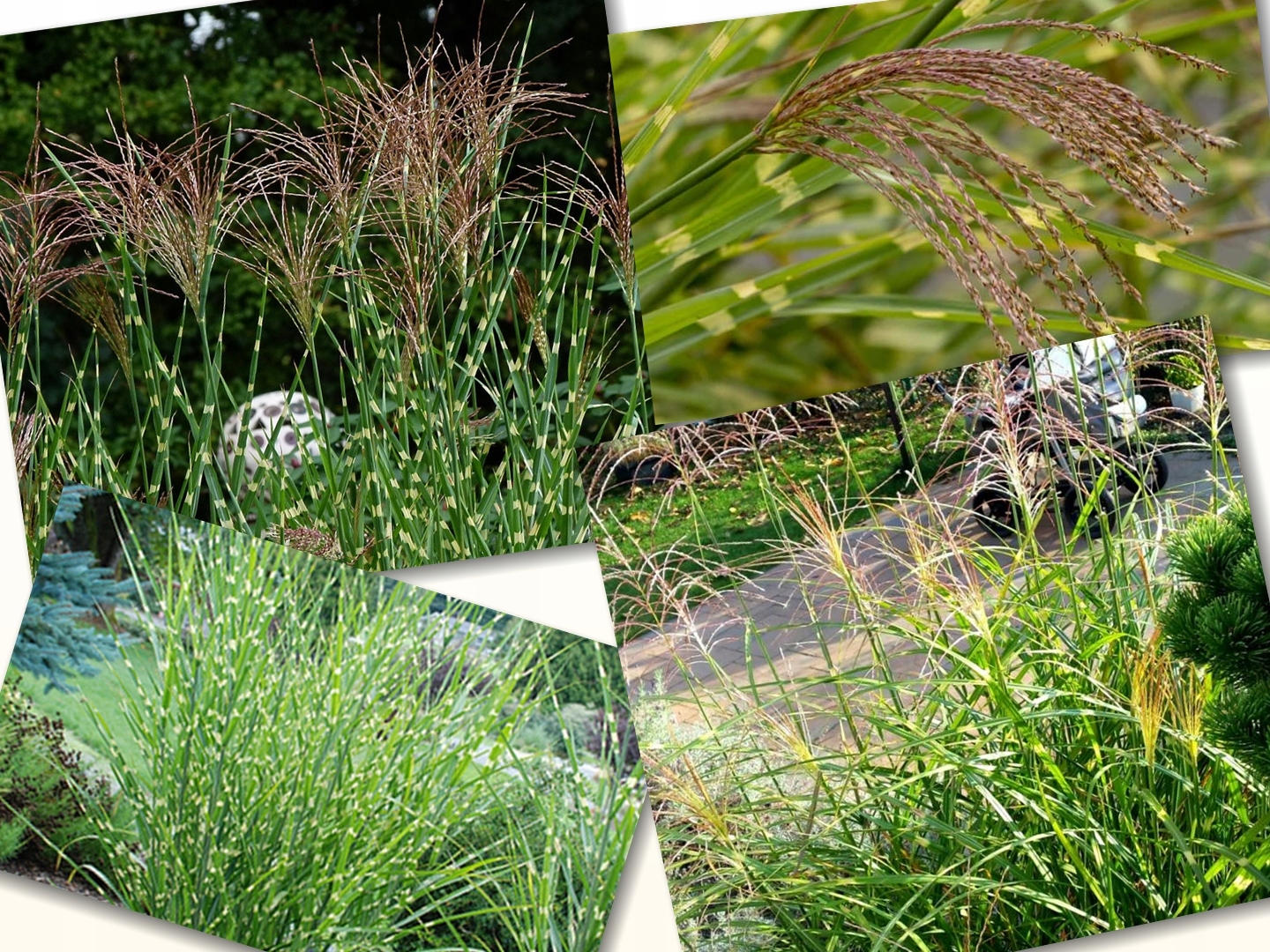 Міскантус китайський 'Zebrinus' - дуже декоративна, сильноросла трава з Далекого Сходу, з характерним зеленим листям з поперечними нерівними кремовими смугами. Суцвіття з'являються восени.