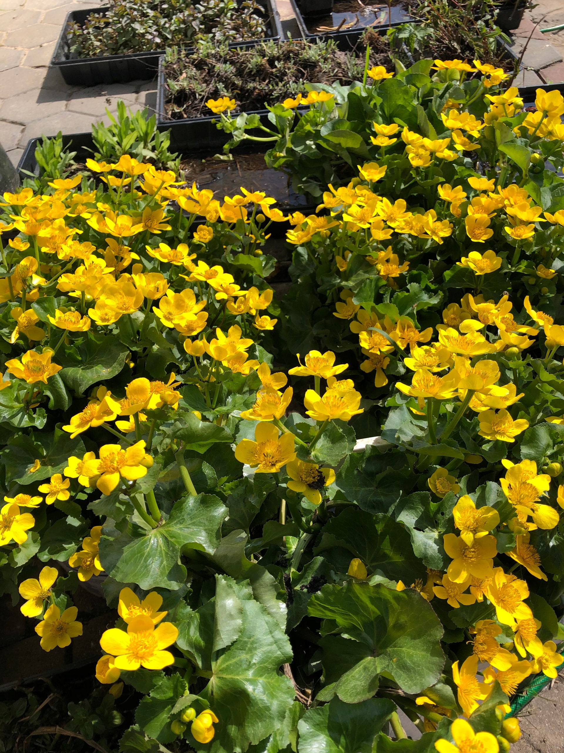 Красивий місцевий водний багаторічник, що досягає висоти 20-50 см. Він росте на сонці та в тіні, вимагаючи родючого та вологого ґрунту. Дуже швидко розростається в пишні кущі. Темно-зелене, блискуче, ниркоподібне листя, серед якого навесні з'являються золотисто-жовті квіти. Дуже великі саджанці, добре вкоренилися.