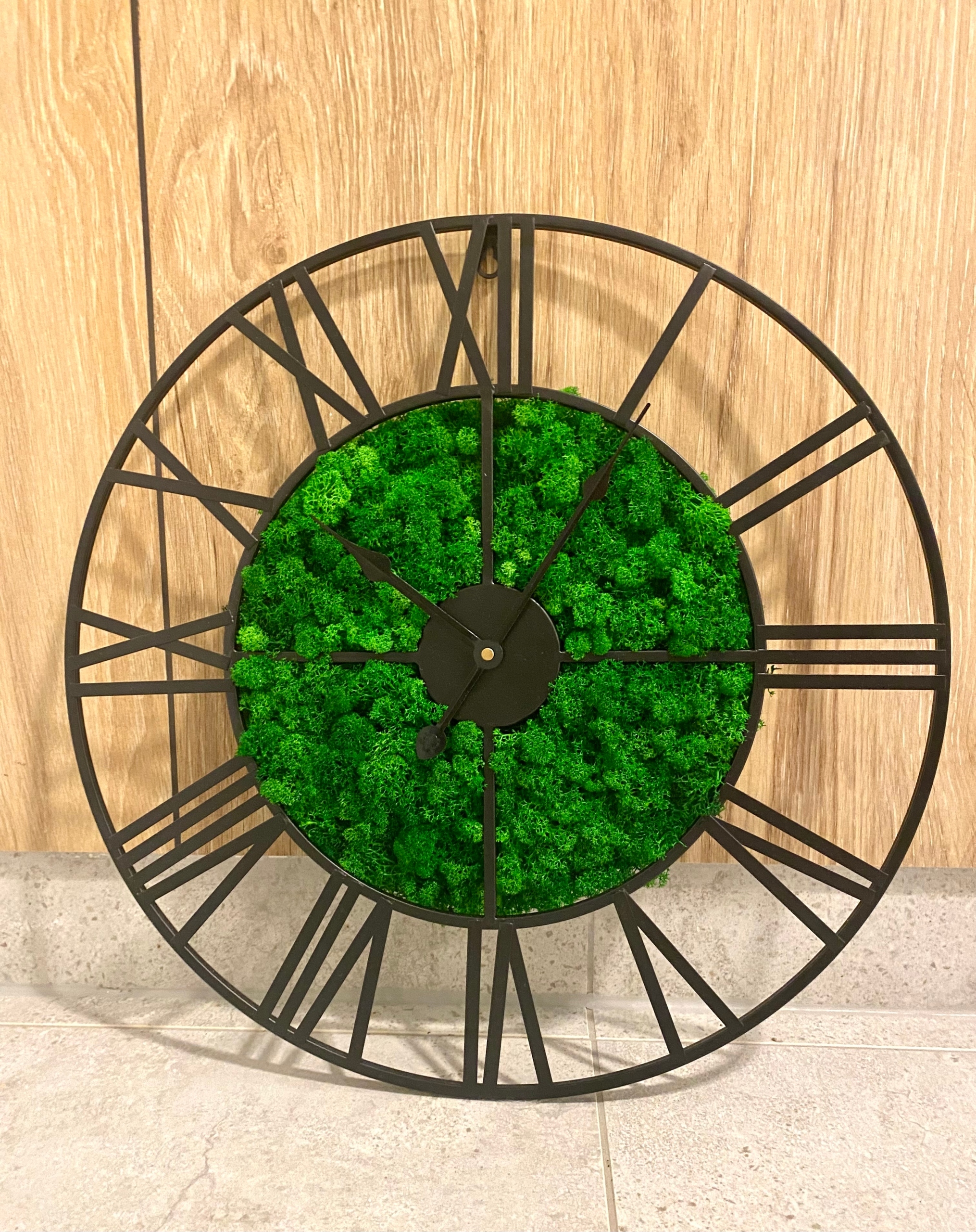 Zegar ścienny loft rzymski duży 48cm z mchem mech chrobotek 50cm