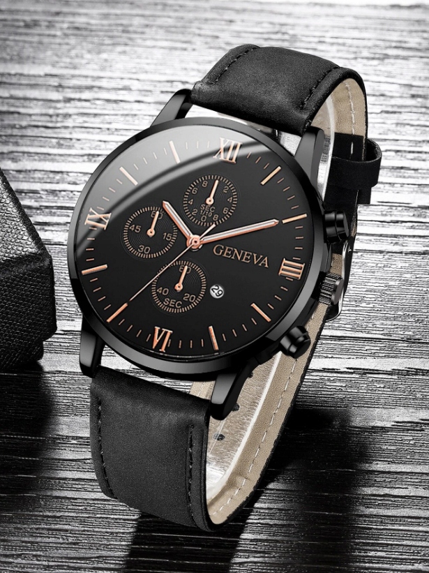 ⌚ Чоловічий кварцовий годинник з чорним ремінцем з екологічної PU шкіри. Він ідеально підходить як доповнення до улюбленої сорочки або зручного світшота, підкреслюючи ваш індивідуальний стиль.