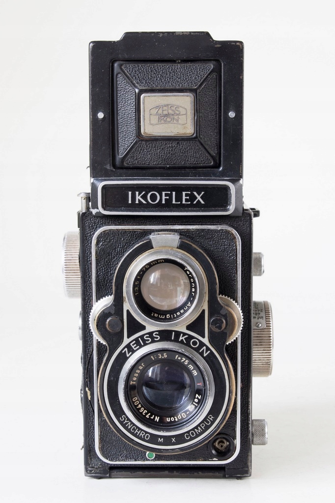 Камера повинна бути функціональною, хоча, щоб бути впевненим, я продаю модель лише як колекціонер. Коротко і довго працюють належним чином. Ручка вітру фільму легко і ефективно, а лічильник клітки працює, але невпевнено - розблокує затвора, ніби з числа 2 і закінчується на 13. Килим знаходиться в хорошому стані, мінус це в кутах, ніби брудні. Дзеркало приємне, але, здається, трохи туманне, незважаючи на це, зображення у видошукачі добре видно - ви можете легко посилити камеру. Об'єктиви знаходяться в дуже хорошому стані, заточують однакові правильно, а діафрагма правильно загортається. Зовні, стан камери хороший, але його можна побачити по віці або використанню, наприклад, стирання лакованих елементів, які можна побачити на доданих фотографіях. Камера без скарг, герметизація в ньому також в хорошому стані. Подумайте, ви також можете спокусити сфотографувати, але до цього я б рекомендував перевірити та змащувати механізми ретельно, і це варто, оскільки Ikoflex у цій версії є досить рідкісною моделлю.