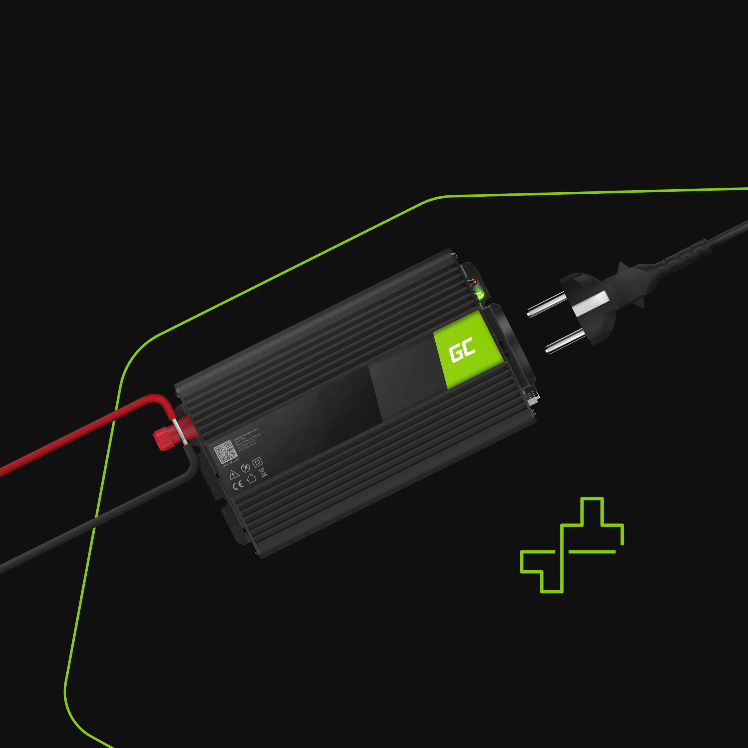 Автомобільний перетворювач Green Cell 12В на 230В, модифікована синусоїда 500Вт/1000Вт