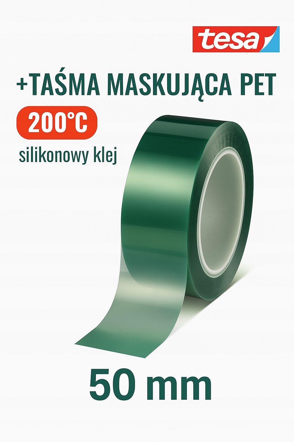 TESA 50620 ВИСОКОТЕМПЕРАТУРНА ЗЕЛЕНА ПЕТ-МАСКУЮЧА СТРІЧКА ДЛЯ ПОРОШКОВОГО ФАРБУВАННЯ