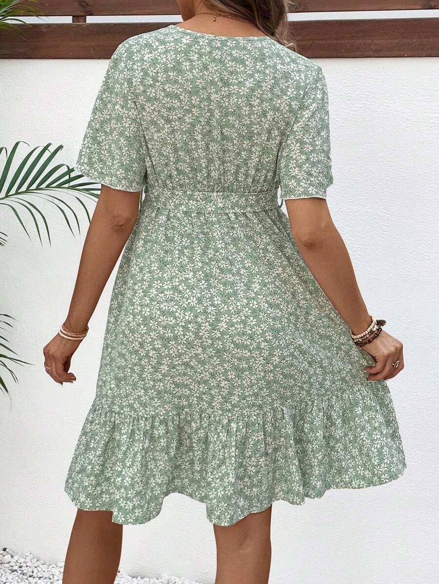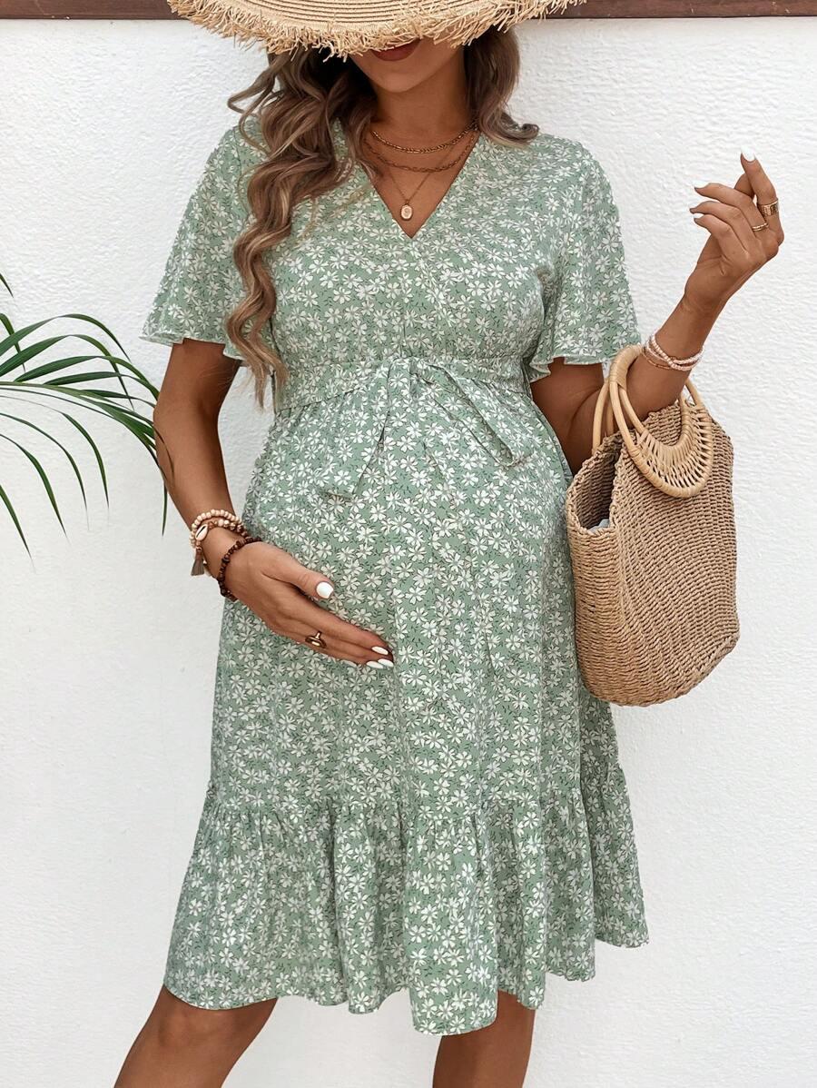Зелене міні -материнське плаття з коротким рукавом квітковий візерунок Shein 44