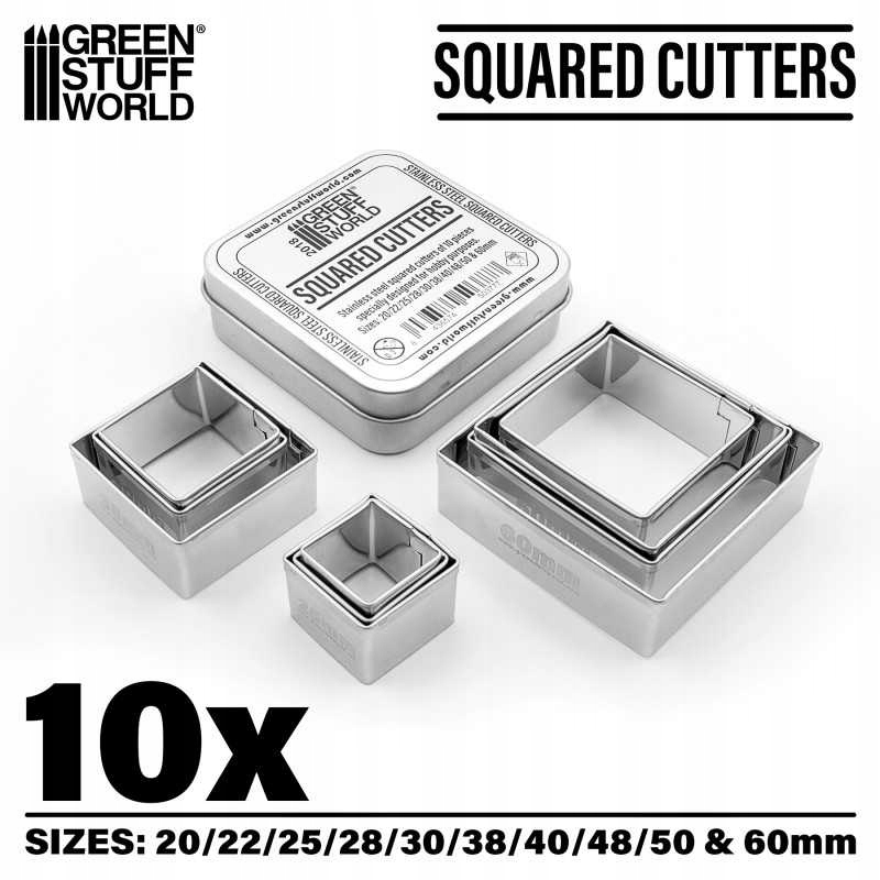 набір квадратних різців з нержавіючої сталі в найпопулярніших розмірах, що використовуються для виконання основ та заповнення основ. Завдяки цьому ви швидко вирізаєте глину та інші матеріали. Вміст: 10 штук