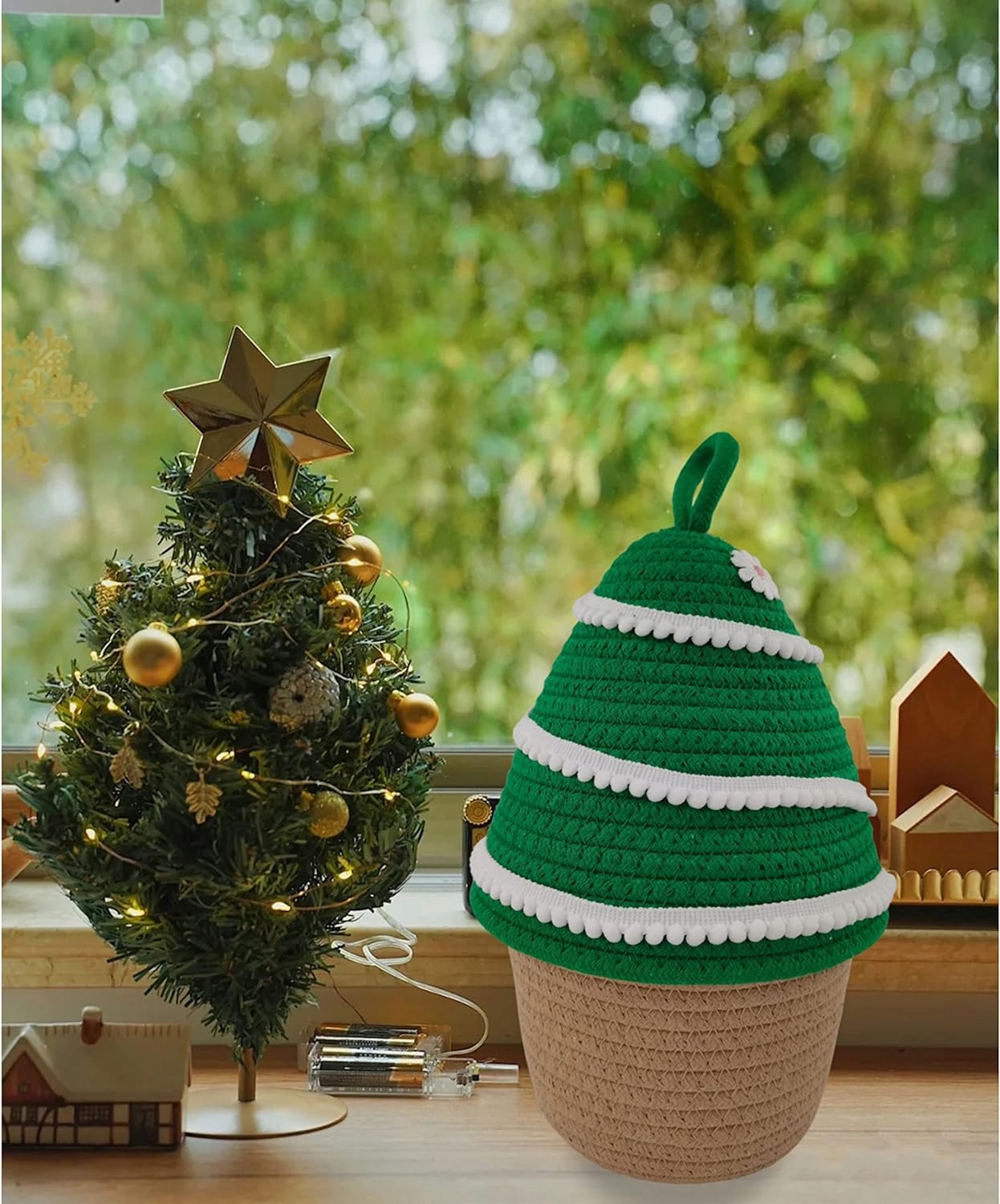 - Ідеальний вибір для різдвяного подарунка. 3 кошиків для зберігання 1 набір. Три ялинки розташовані разом у картонній коробці, вони приємні та практичні подарунки, які всі оцінять. Його також можна використовувати як невеликий різдвяний кошик, а стильний кошик для зберігання робить все, що є в ньому як різдвяний подарунок.