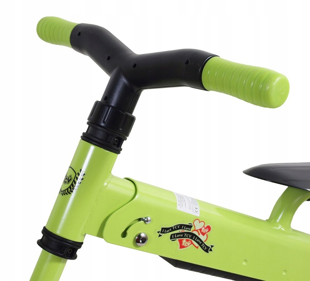 Модель велосипедного велосипеда TCV-T700 в зеленому кольорі. Під час руху дитини він не тільки грає, але й практикує баланс, координацію, але й відчуття швидкості, що в майбутньому призведе до відмінного майстерності їзди на традиційному велосипеді. Піні колеса.