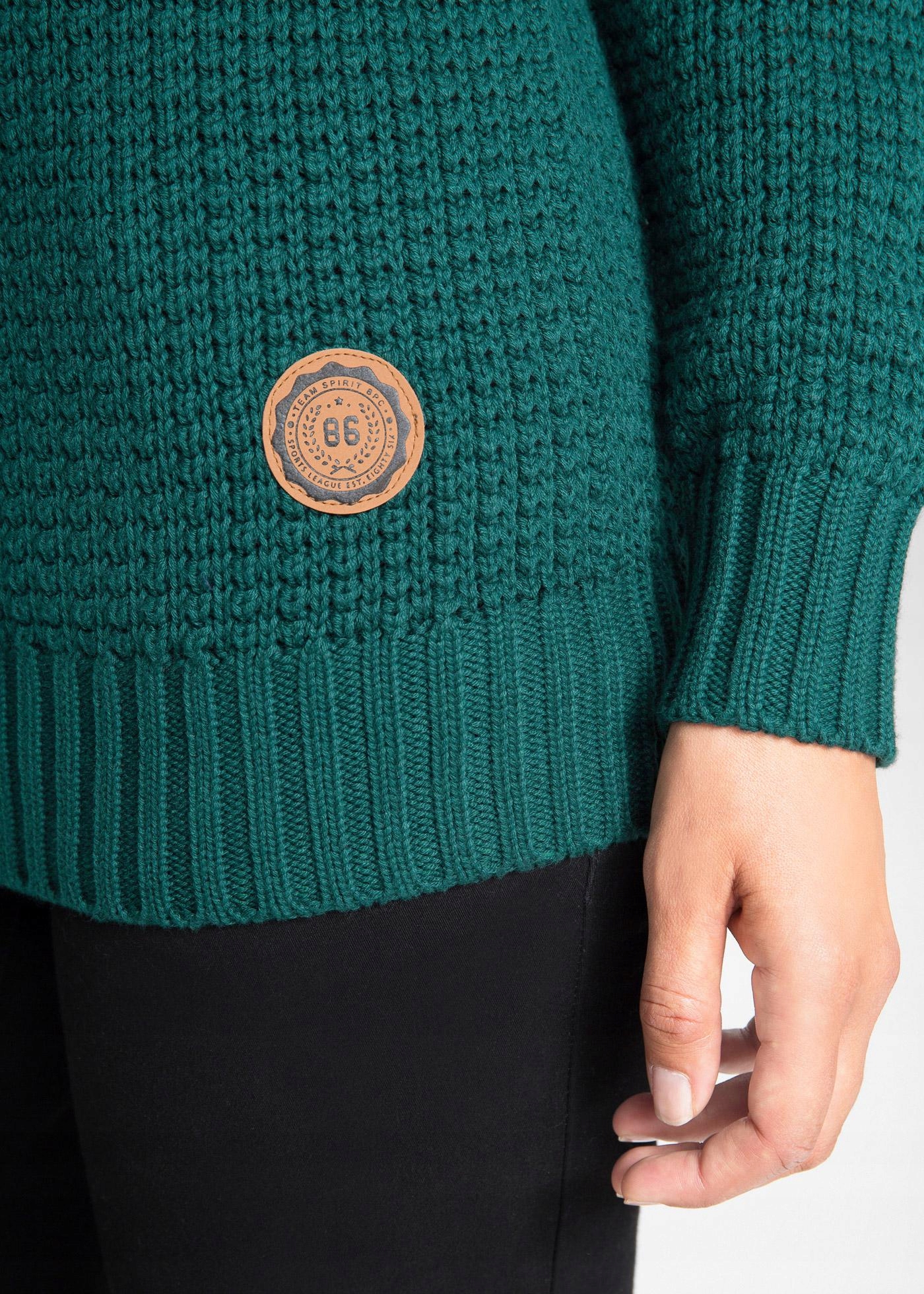 Стильний, пристосований жіночий светр у модному зеленому кольорі з комфортним водолазкою, що забезпечує додаткову ізоляцію. Довгий розріз ідеально захищає від холоду і підкреслює фігуру. Виготовлений з м'якого, гнучкого матеріалу, ідеально підходить для осінніх днів - для роботи, для прогулянки чи зустрічей з друзями. Переваги продукту