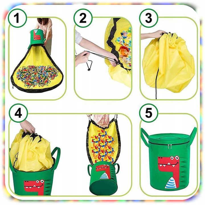Наша сумка-кошик 2-в-1 з килимком розміру XXL - це чудове поєднання контейнера для іграшок і ігрового килимка - просто потягніть за шнурок, і всі іграшки будуть усередині миттєво! ⚡