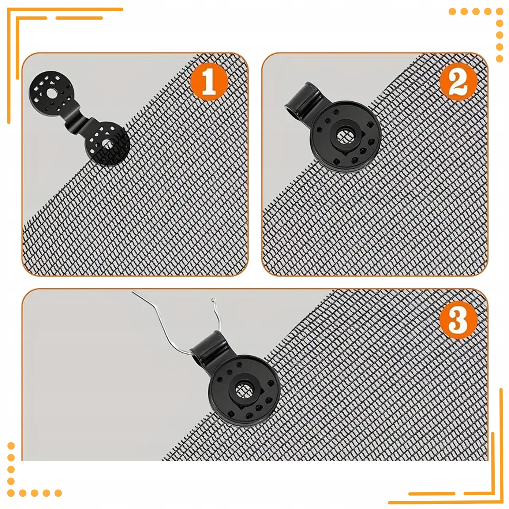 Відповідь продавця: Встановлення наших кліпів надзвичайно просте та інтуїтивно зрозуміле. Вони були розроблені таким чином, що будь-хто може впоратися з ними, забезпечуючи надійне та стабільне кріплення сітки всього за кілька секунд.