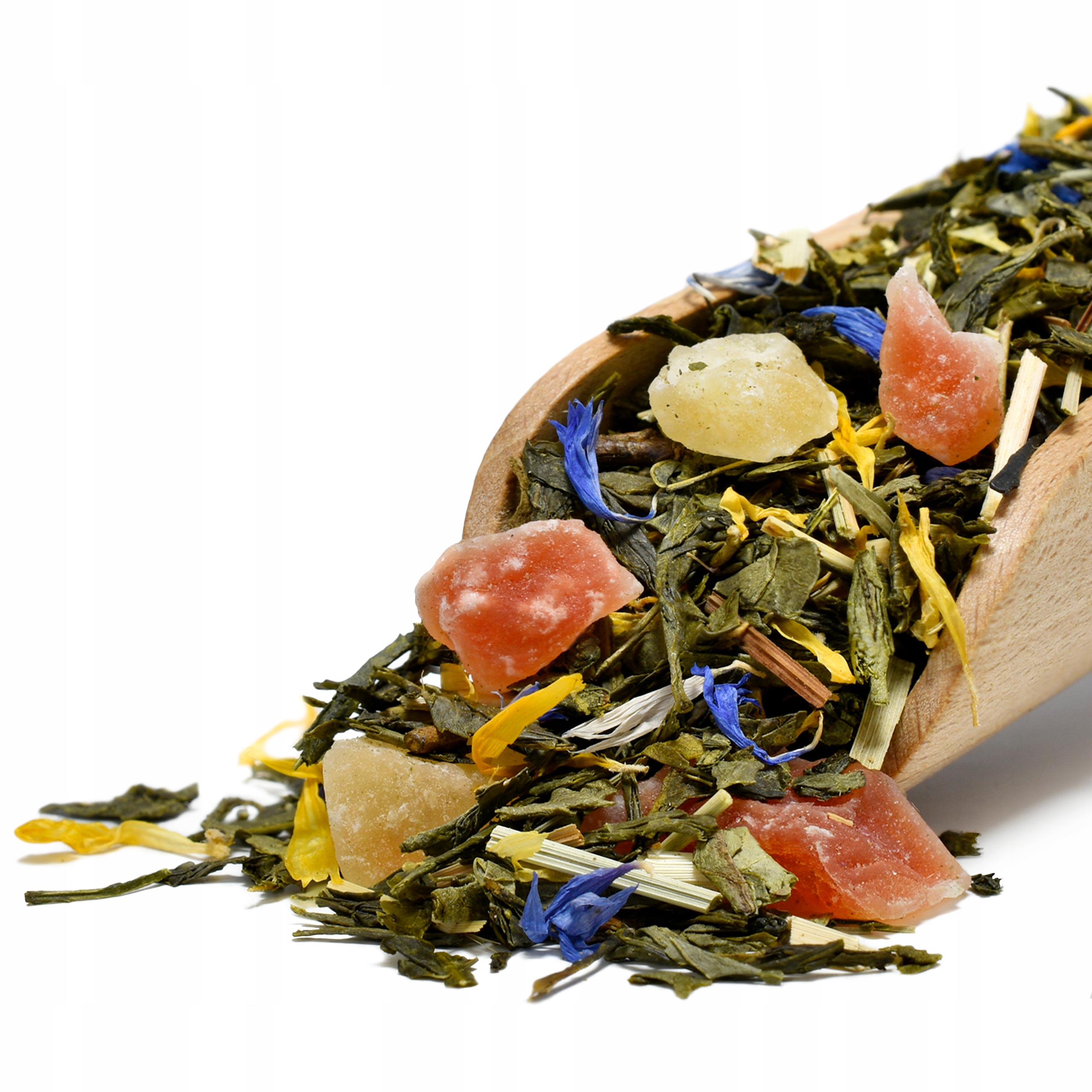 Основа чайної композиції Мері Роуз Папая Фантазія є зеленим чаєм Sencha . Його делікатний, але злегка гіркий смак ідеально складався з трав'яними та фруктовими добавками. Спеціальний інгредієнт - це цукерки papaya , яка вводить фантастичну, солодку не тільки на смак, але і в ароматі ноти солодощів. Солодкість розбиває кислоту лимонну траву , а дивовижний букет ароматів та ароматів завершує гострі пластівці квіткових пластівців: bławadka і marigold , які також візуально прекрасно поєднують із кольором зеленого чаю. Додаткова інформація Додаткова інформація: