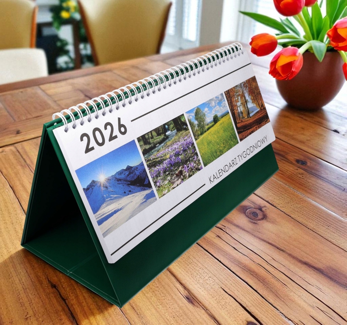 Настільний календар WEEKLY PREMIUM 2026 на підставці, зелений