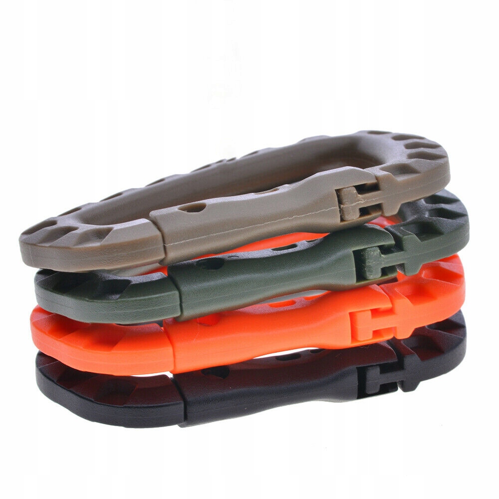 Дуже міцний, практичний карабін з ABS-пластику для кріплення на поясі або мотузці. Пряжка також може бути використана як підвіска або кріпильний елемент для ключів, обладнання та електричних інструментів.