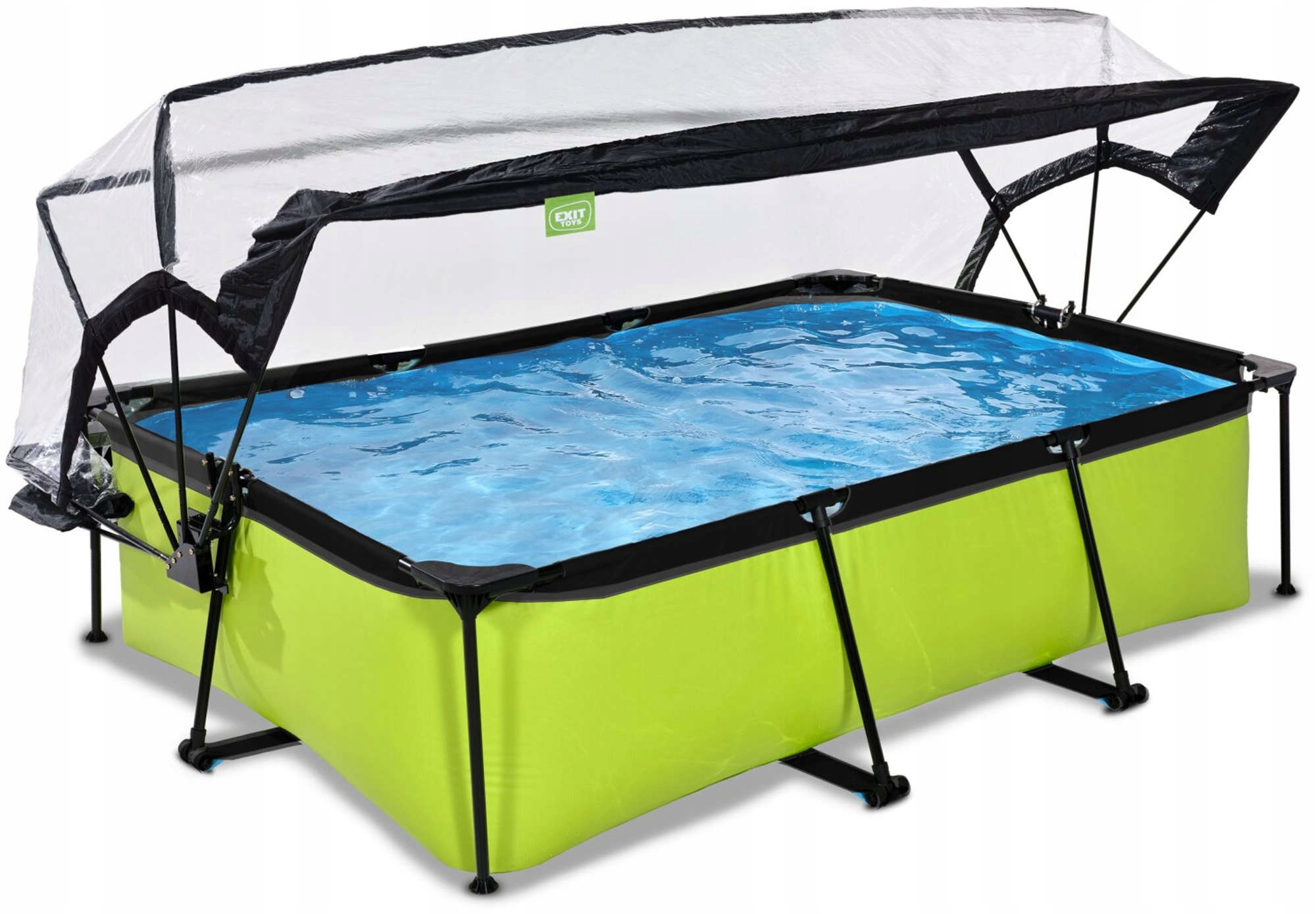 Вихідний басейн 220 x 150 x 65 см - прямокутний басейн з рамкою з інтенсивними зеленими кольорами. Басейн стандартний, оснащений насосом фільтру , який зберігає воду чистою та кришкою , що дає тінь.