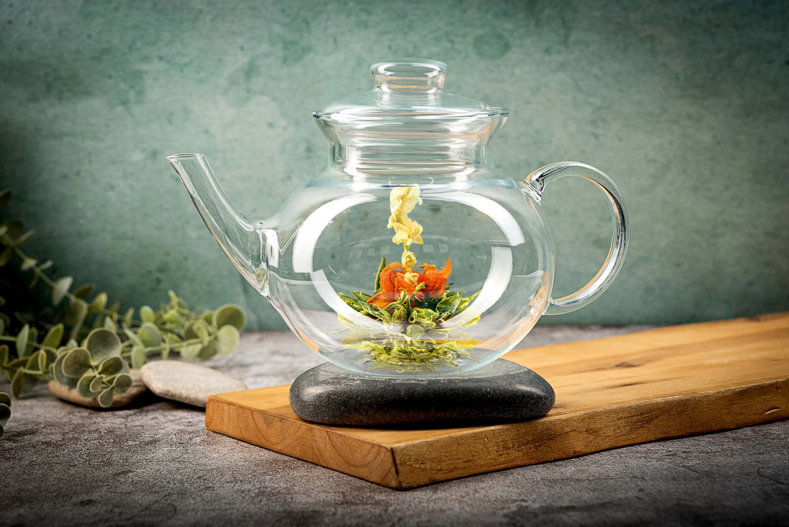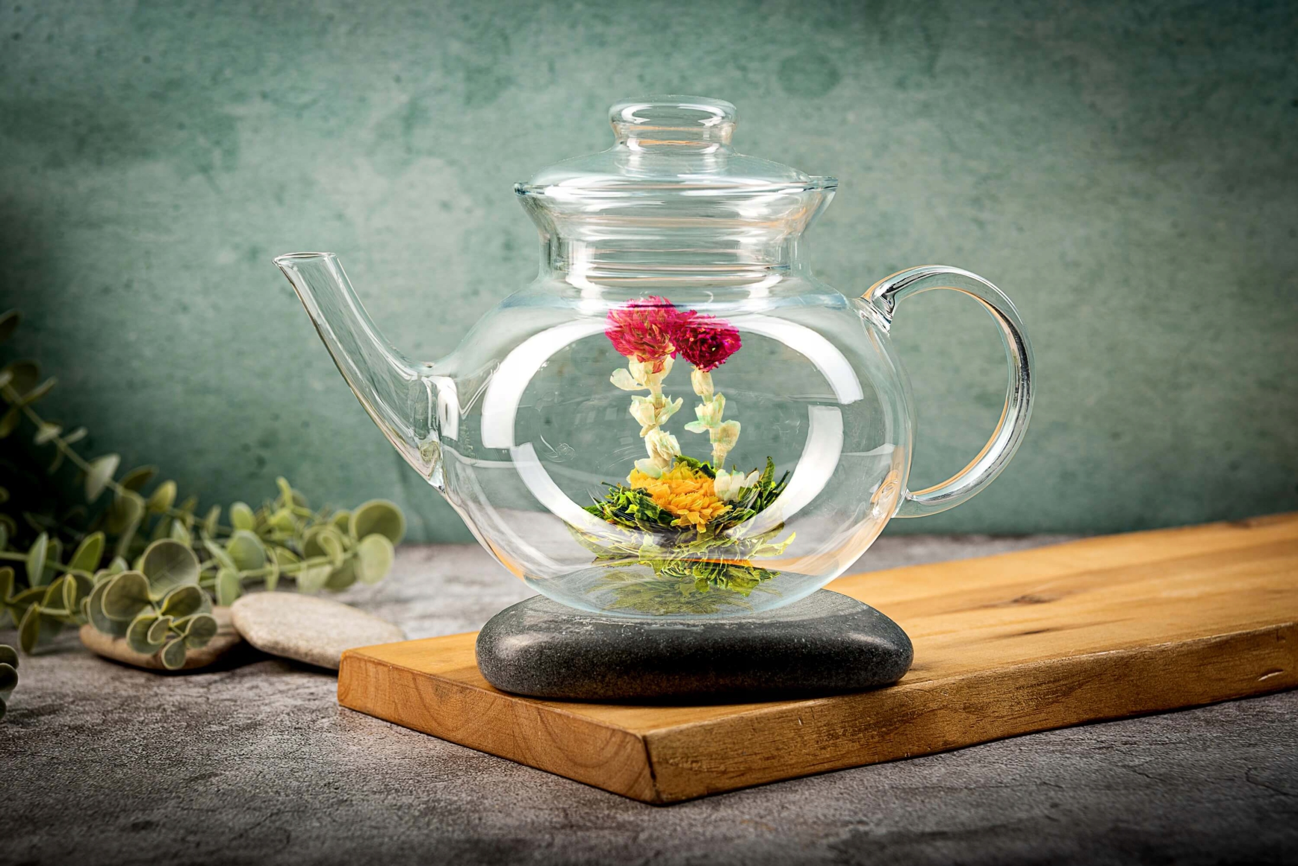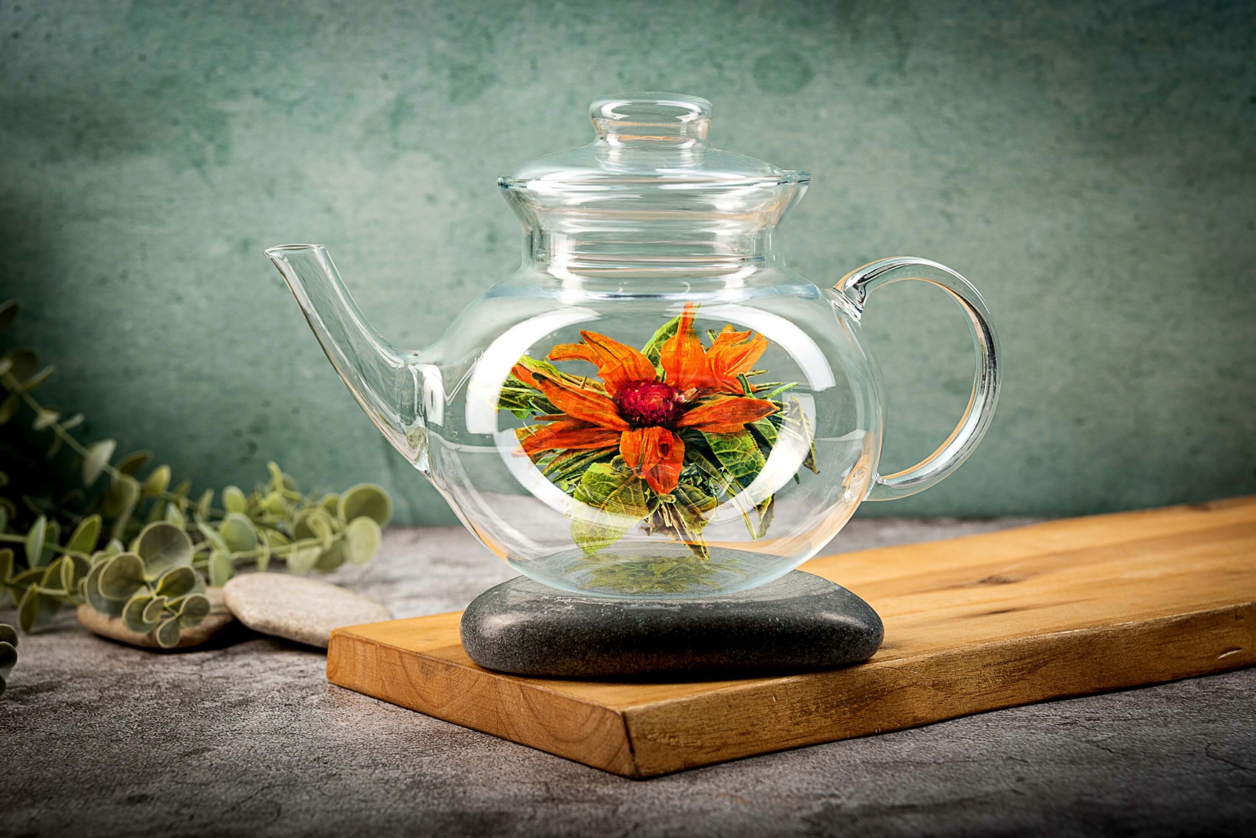 Прекрасне видовище в нашому глечику - квіткові чаї - це згорнуті вручну чайні листочки з квіткою, вміщеною всередину. Завдяки спеціальному процесу зв’язування та сушіння після заварювання кулька розвивається в нашій посудині в красиву велику квітку довжиною кілька або кілька сантиметрів.