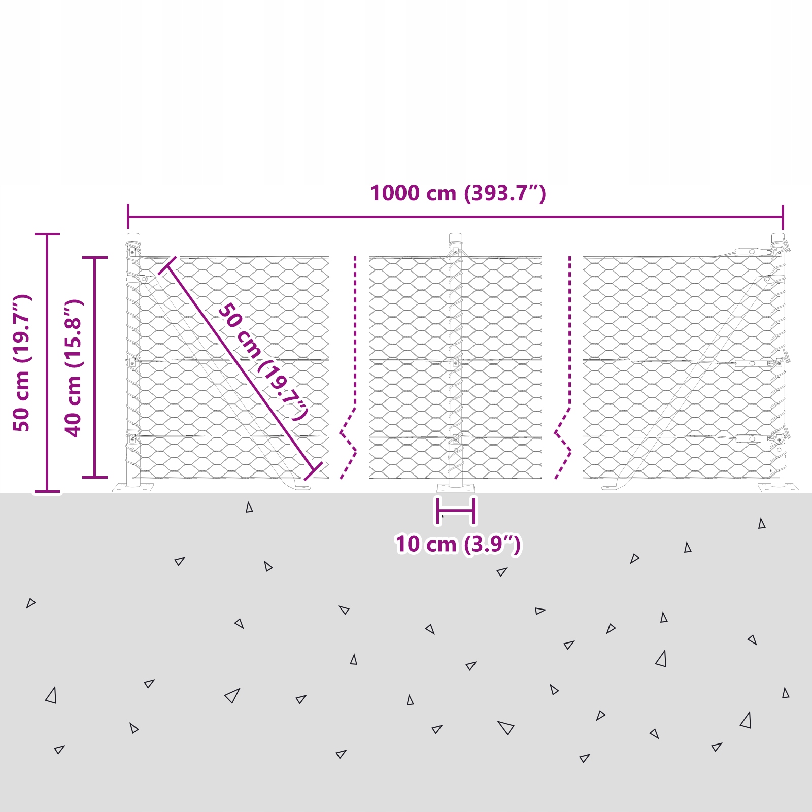 Огорожа Green Hexagon 0,4х10 м Сталь, Стовпи для огорожі з підставками 7 шт. Ø32 мм 50 см Оцинкована сталь