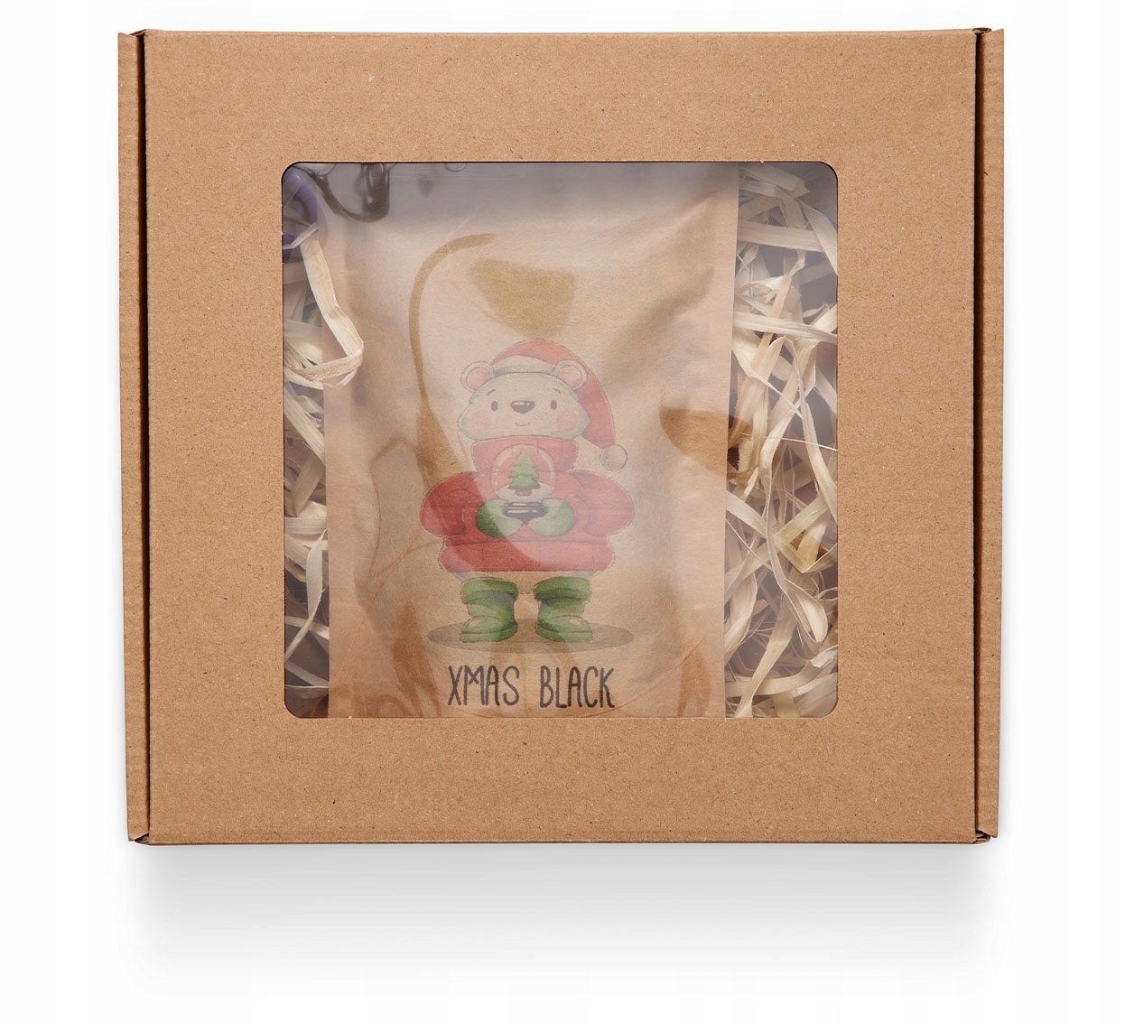 Декоративна фігурна картонна коробка, наповнена сосновими стрічками. Ми можемо упакувати максимум 6 упаковок чаю в одну коробку.