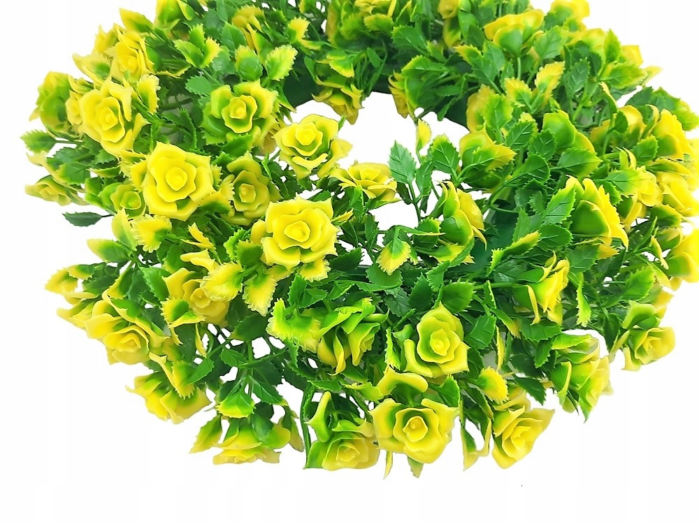 ШТУЧНИЙ ЗЕЛЕНИЙ ТА ЖОВТИЙ ВІНОК ІЗ ТРОЯНДАМИ.