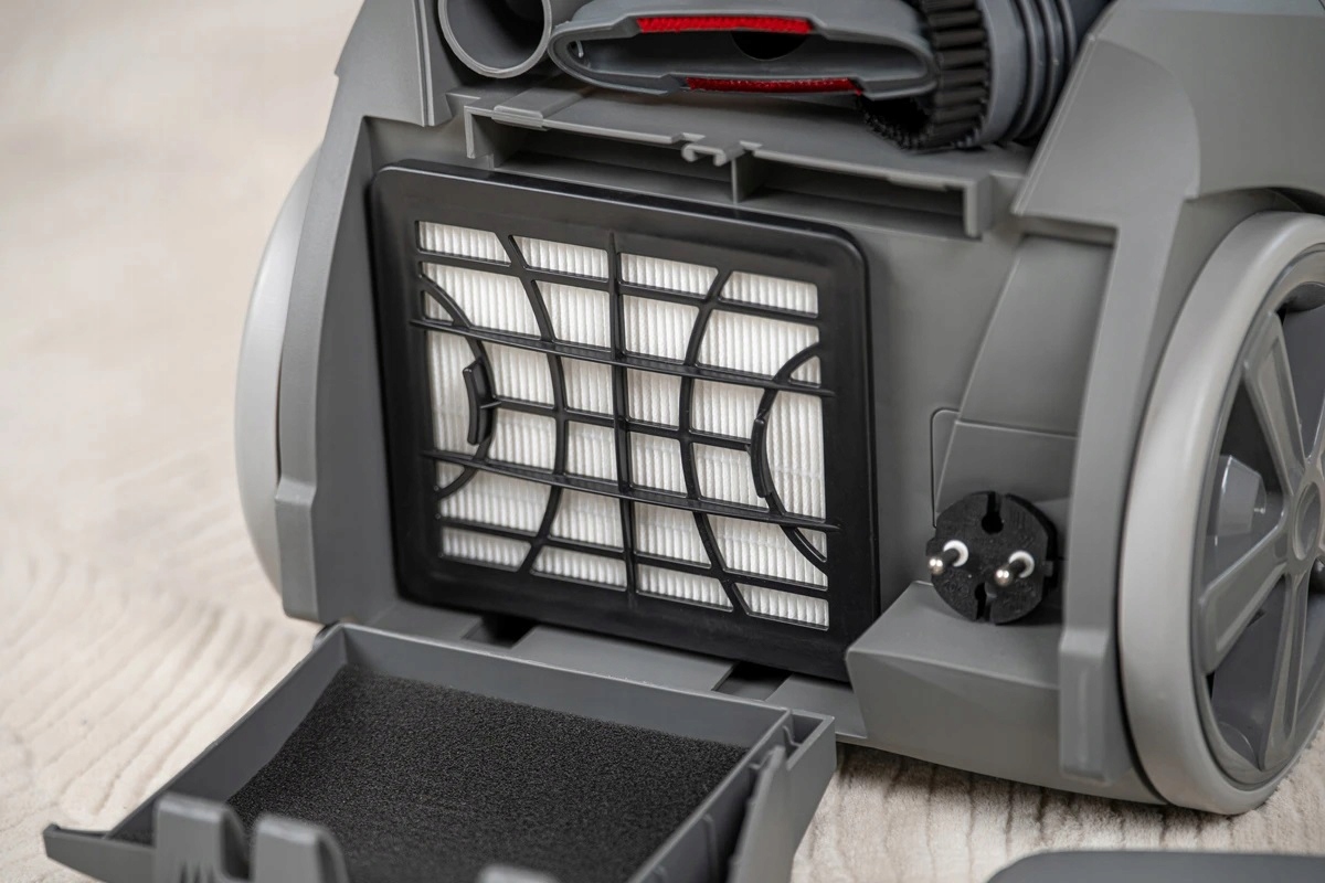 Фільтр HEPA 13 зупиняє до 99,95% забруднюючих речовин, таких як пил, пилок, кліщі та шерсть тварин. Завдяки цьому пилосос не тільки миє підлоги, а й очищає повітря в приміщенні. Це справжня вигода для всієї родини - менше пилу, що витає в будинку, здоровіші умови для дітей і полегшення для алергіків. Якщо у вас є домашні тварини, ви можете насолоджуватися свіжим повітрям без жорсткої шерсті та алергенів.