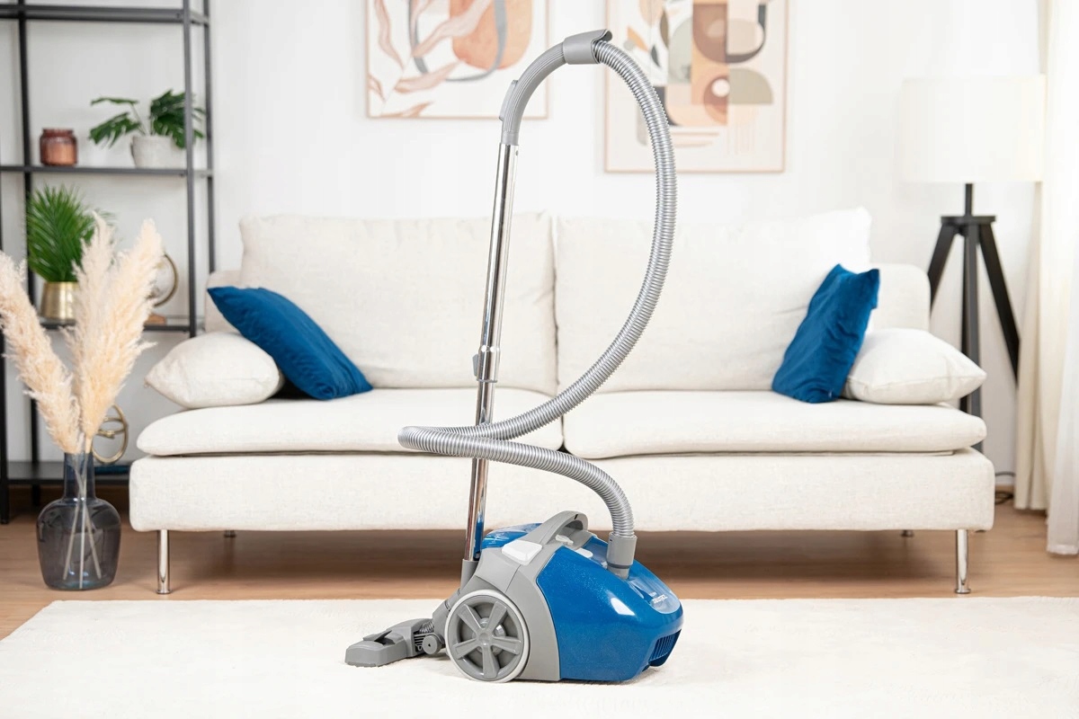 Пилосос вражає своїм елегантним синім кольором, збагаченим тонкими блискучими частинками. Це пристрій, який поєднує в собі функціональність з естетикою - полегшує прибирання і в той же час є стильним елементом домашнього інтер'єру. Сучасний дизайн і вишукані деталі роблять його вражаючим у будь-якому середовищі.