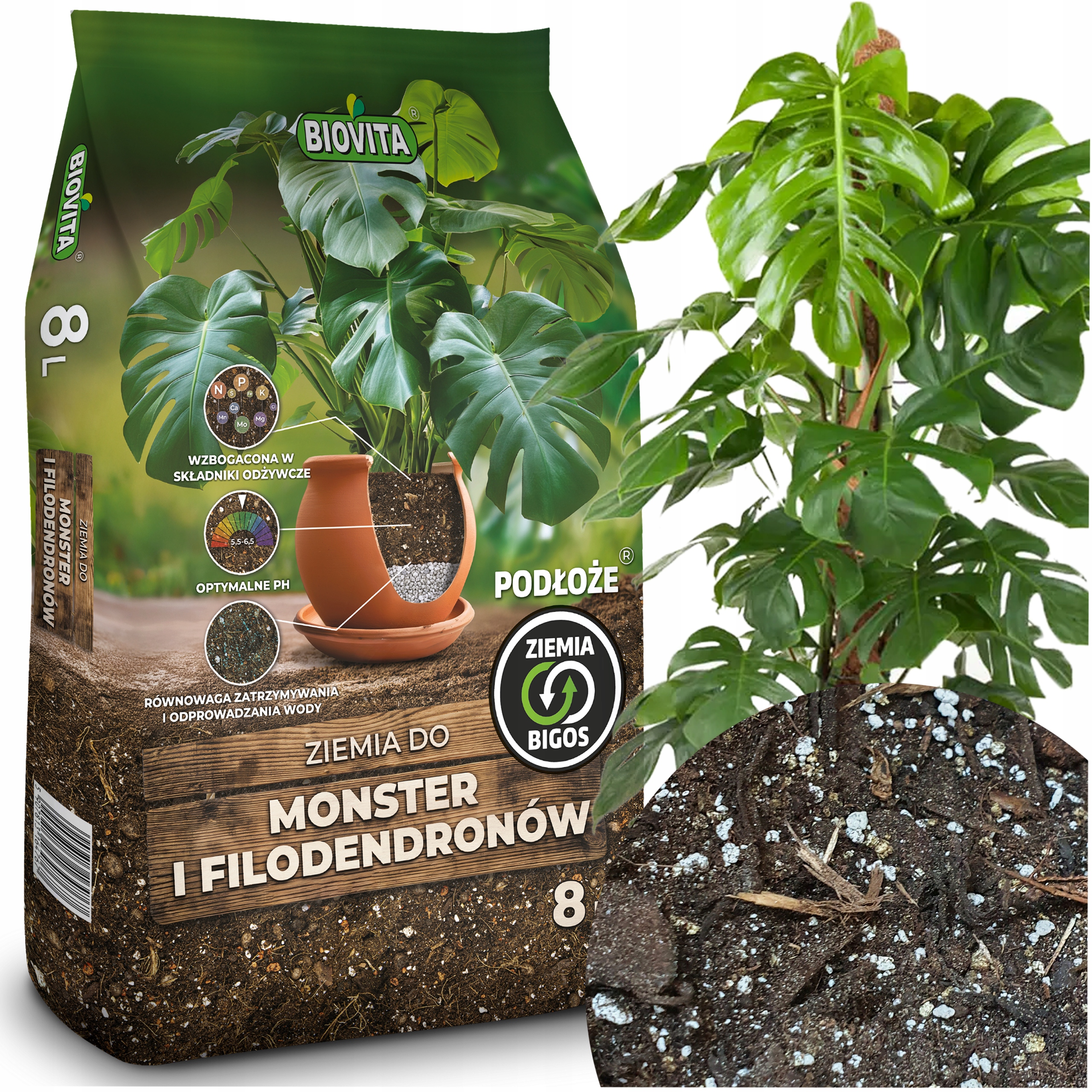 Ґрунт для монстер і філодендронів Бігос — це професійна суміш, створена для тропічних рослин, таких як монстери та філодендрони. Ці популярні декоративні рослини, відомі своїми великими привабливими листками, дуже вимогливі до субстрату, а продукт бренду Biovita - Бігос забезпечить їм найкращі умови для росту та розвитку та посилить посилення їх декоративного листя.