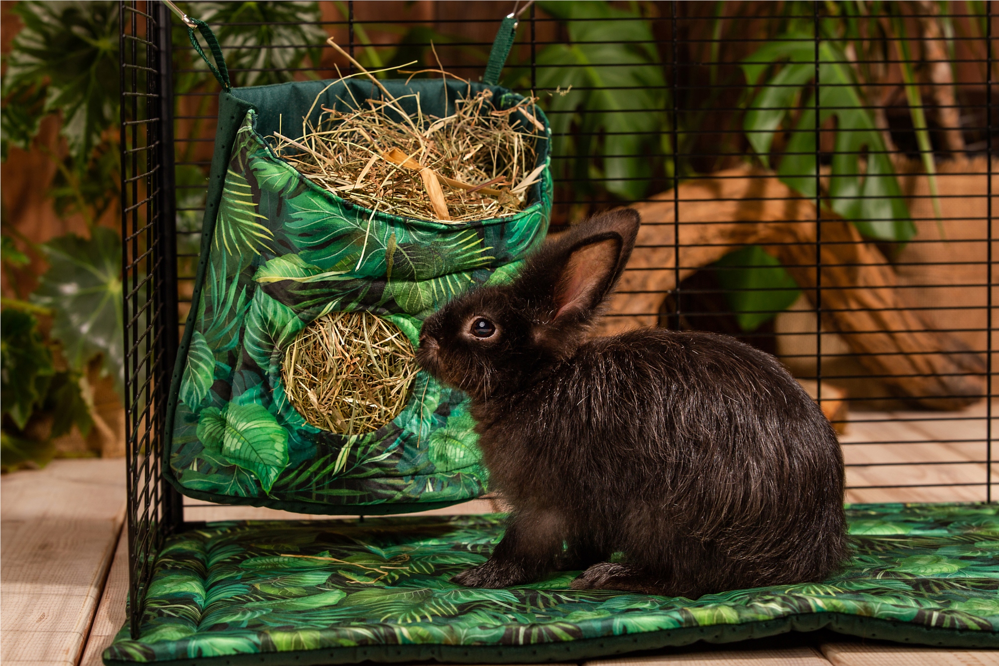 Годівниця для гризунів і кроликів з колекції Paradise Garden стане прекрасним доповненням до прикраси простору ваших улюбленців. Конструкція годівниці полегшує використання - ви кладете сіно вгору, а тварини дістають його через отвори. Годівниця виготовлена з оббивного матеріалу з ручками зі скотча. Конструкція годівниці додатково посилена оббивним поролоном. Внутрішня частина годівниці обшита водонепроникним поліестером, що полегшує очищення.