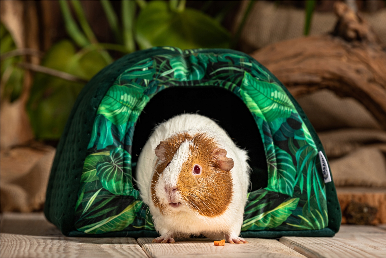 Атмосферний, привабливий принт був розміщений на надзвичайно оксамитовій оббивній тканині Velvet. Тисячі мікрошерстинок, з яких він складається, забезпечать вашим вихованцям найвищий рівень відпочинку. Крім того, цей матеріал повітропроникний, добре переносить контакт з кігтями, не лізе і не вицвітає на сонці. У нижній частині капюшона ми помістили гладкий поліестер, який стійкий до будь-яких умов, і чистка якого займе у вас лише хвилину. Іншими словами - це не тільки зручна, але і довговічна лежанка для гризунів і їжаків.
